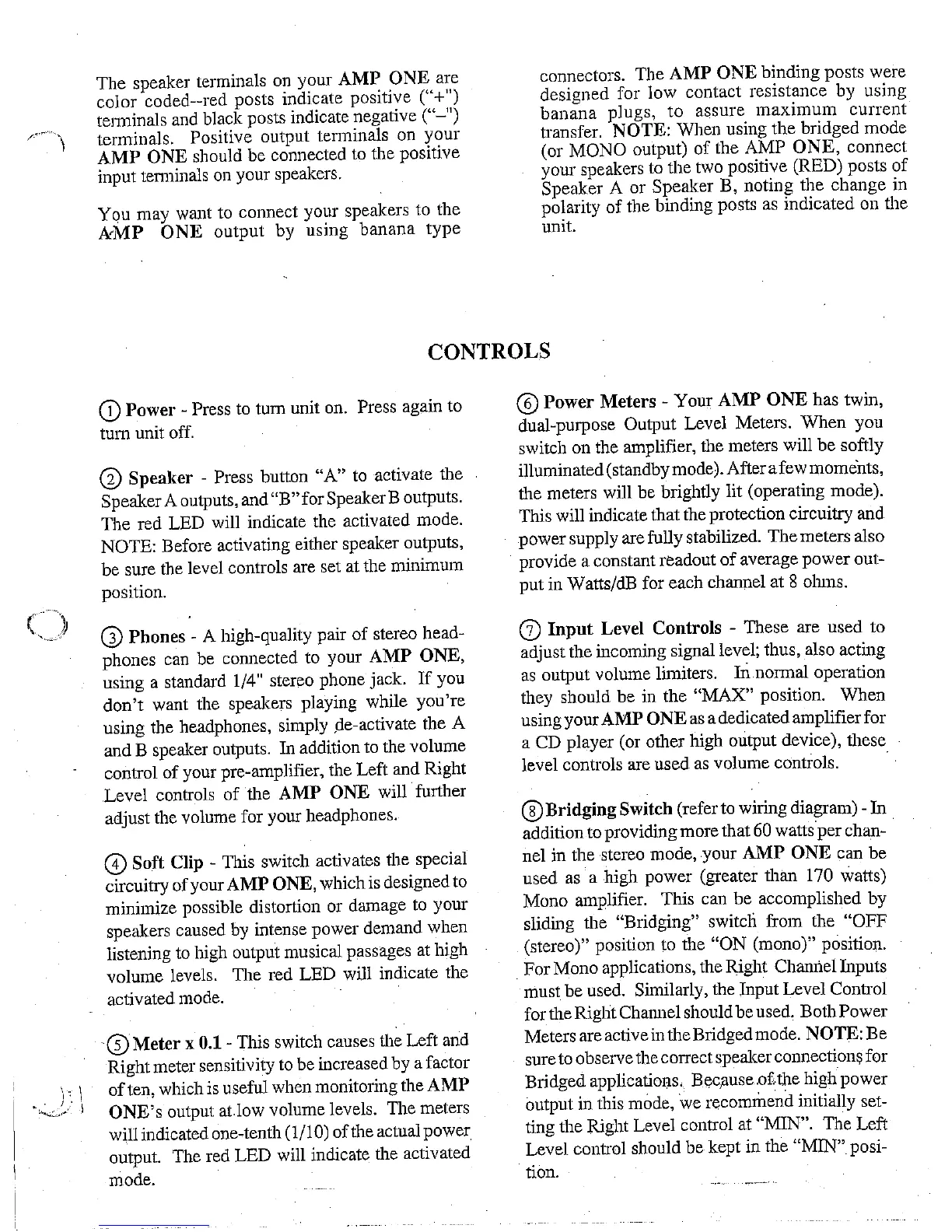 AudioSource AMP ONE - Controls and Features; Power and Speaker Output Controls; Headphone and Soft Clip; Meter and Input Level Controls
