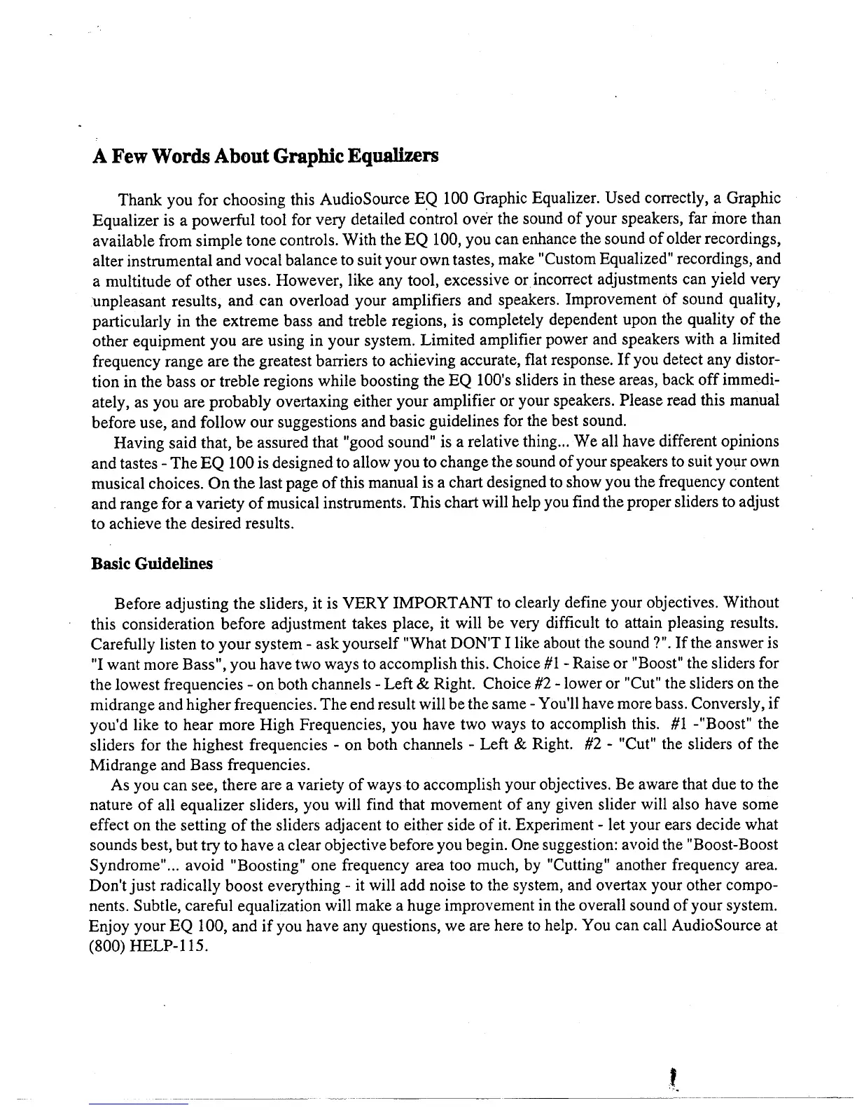 AudioSource EQ 100 - Understanding Equalization; Graphic Equalizer Principles; Basic Adjustment Guidelines
