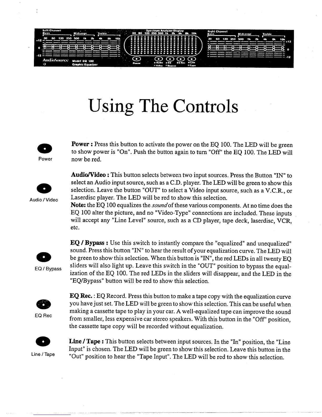 AudioSource EQ 100 - Front Panel Controls; Power Button Operation; Input Source Selection; EQ Bypass Function