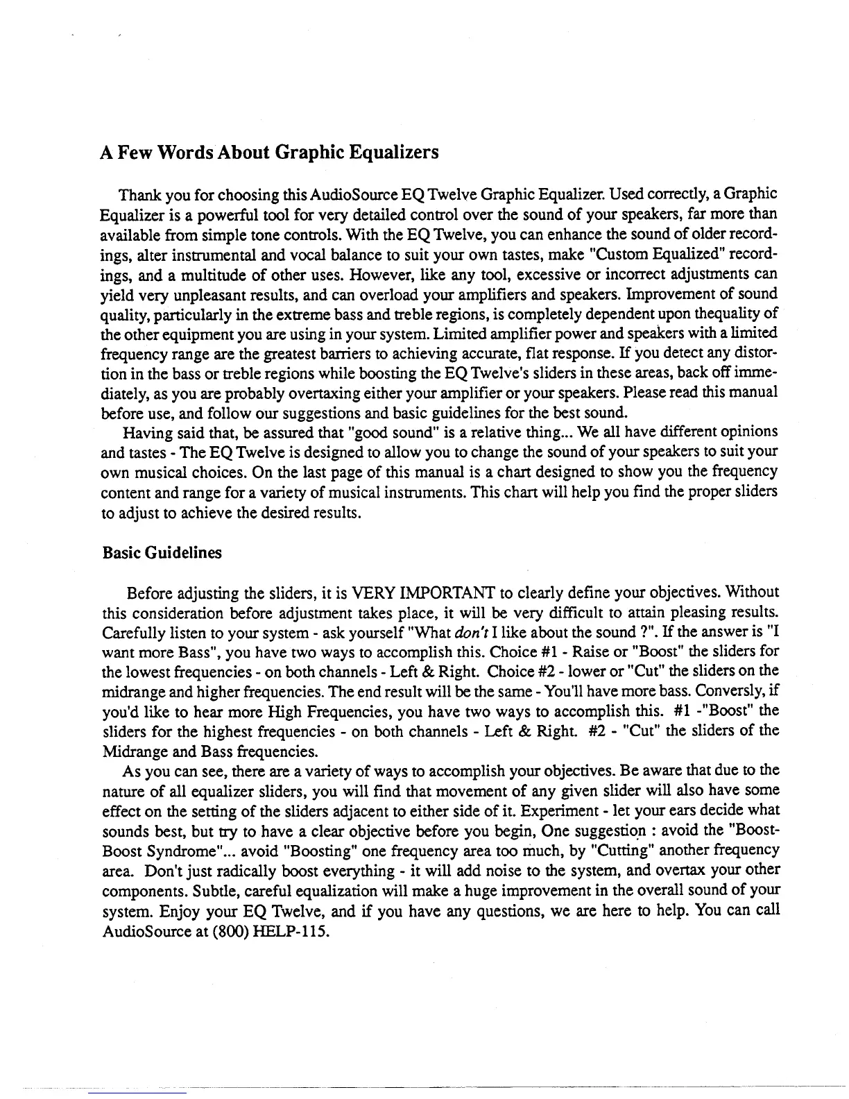 AudioSource EQ 12 - A Few Words About Graphic Equalizers; Basic Guidelines