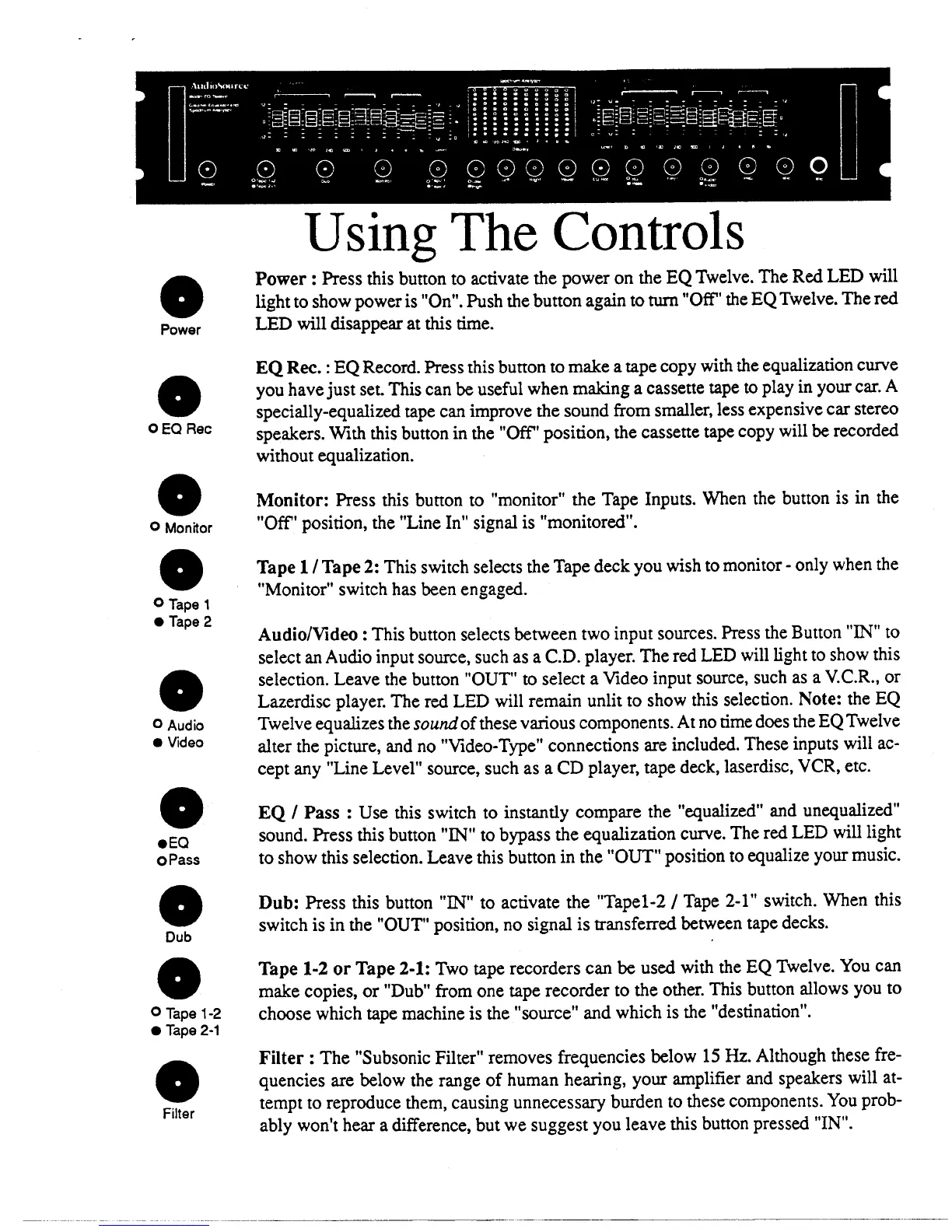 AudioSource EQ 12 - Using The Controls; Front Panel Control Descriptions