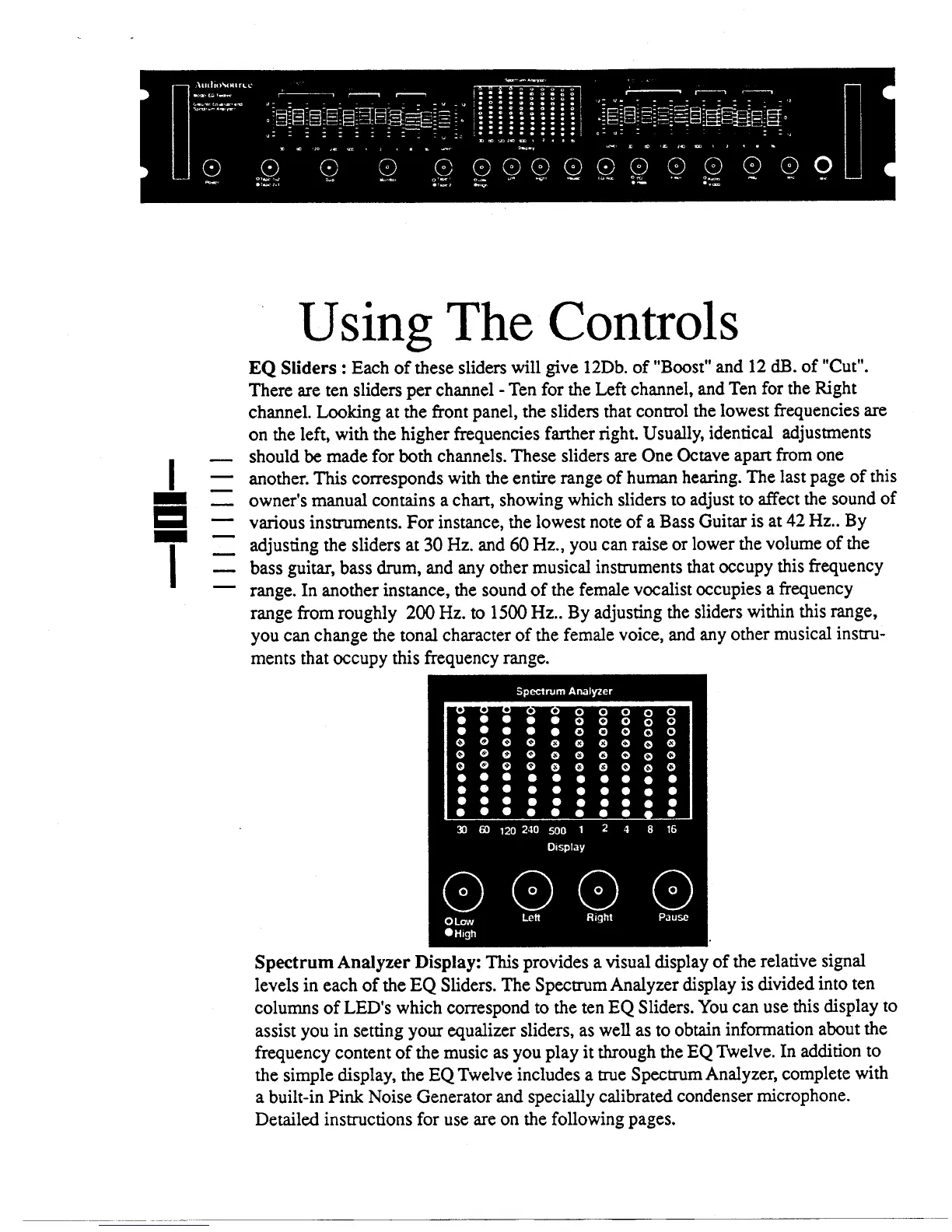 AudioSource EQ 12 - Using The Controls; EQ Sliders; Spectrum Analyzer Display