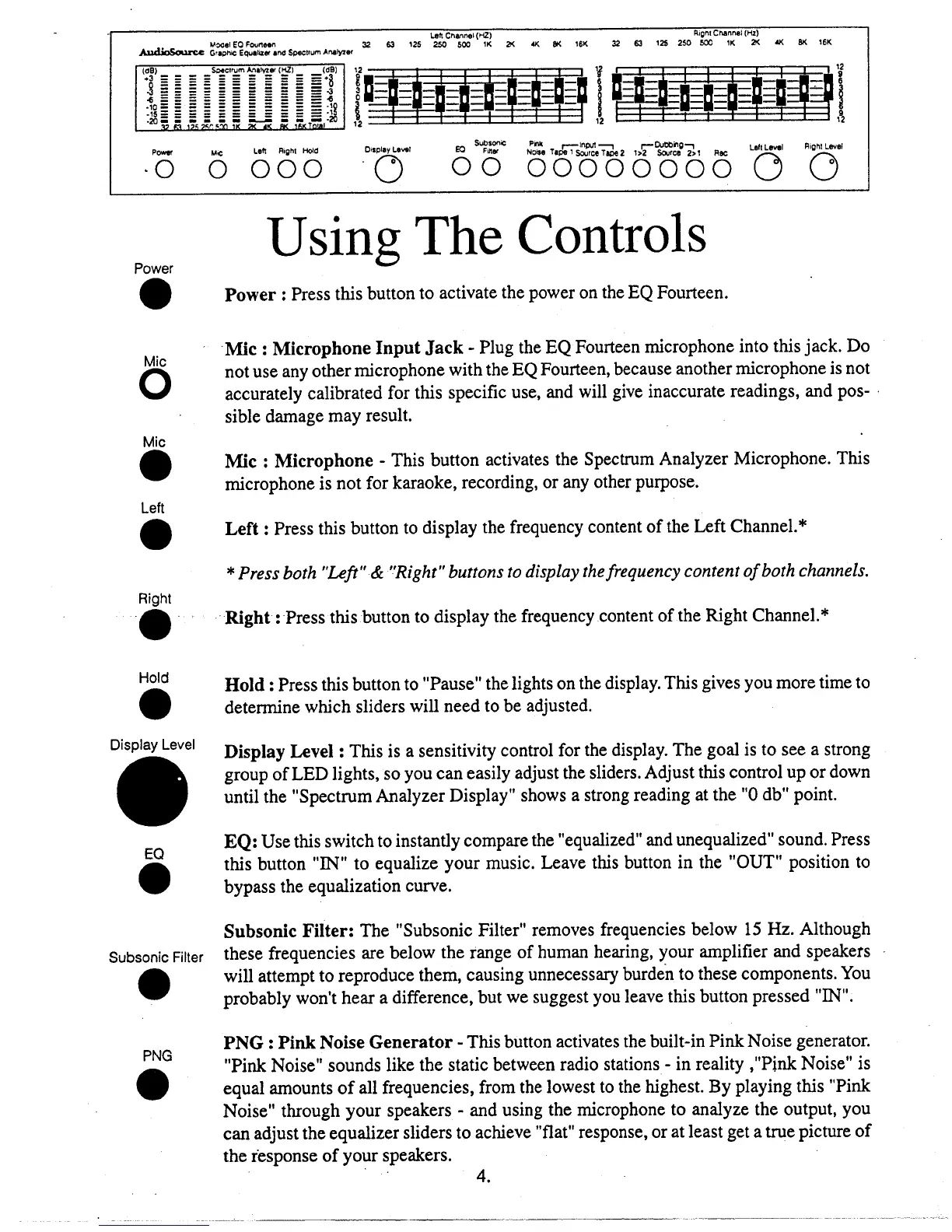 AudioSource EQ 14 - Using the Front Panel Controls; Front Panel Control Descriptions