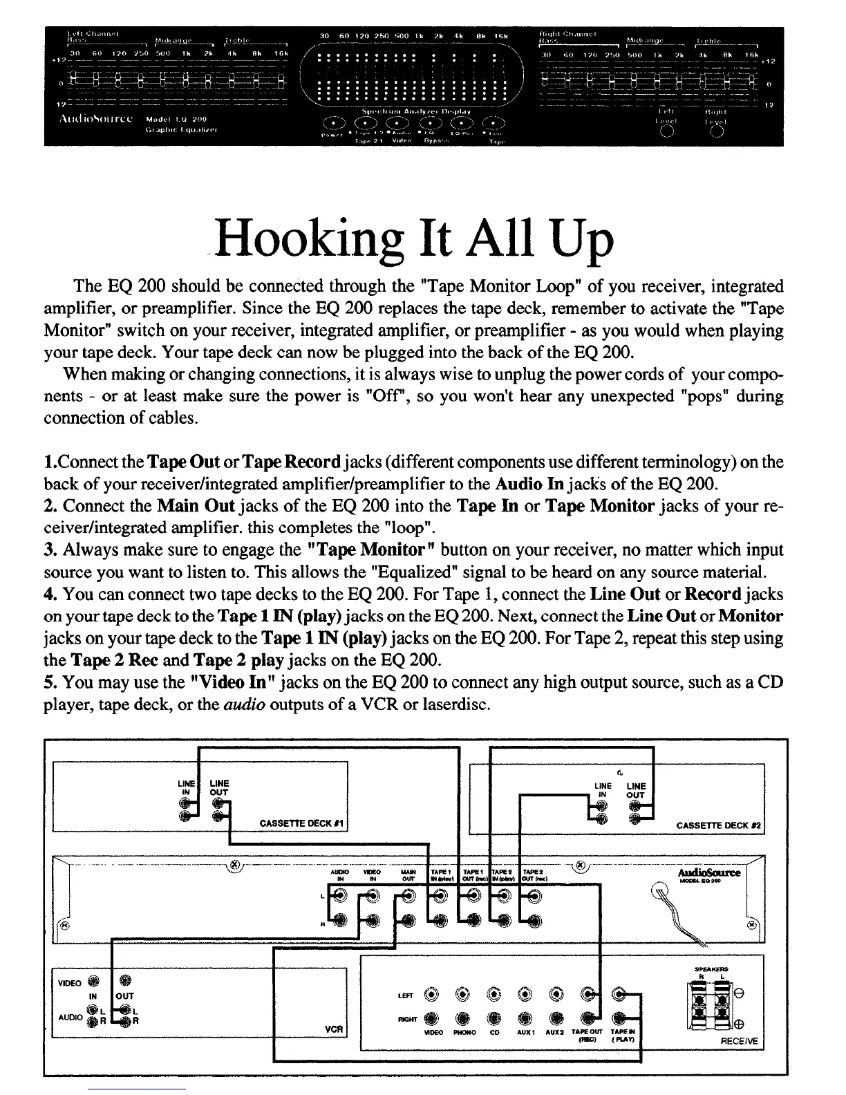 amplifier, or preamplifier. Since the EQ 200 replaces the tape deck, remember to activate the “Tape