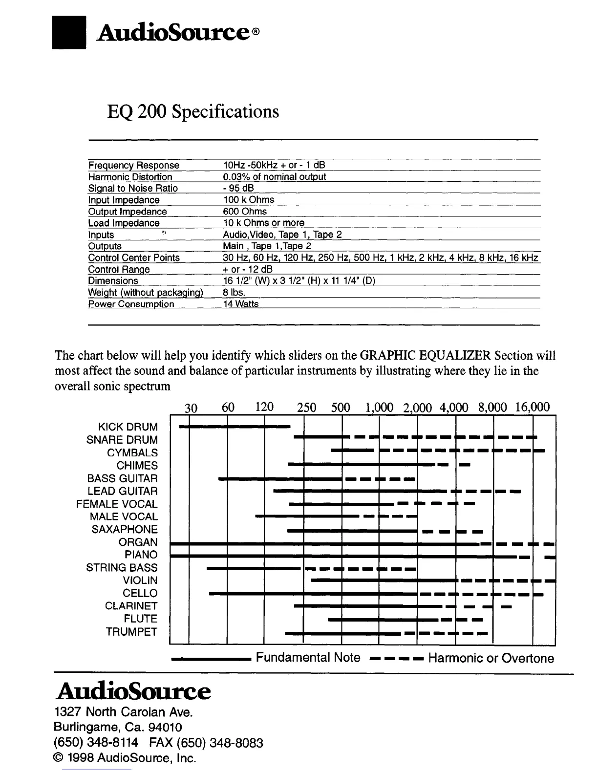 The chart below will help you identify which sliders on the GRAPHIC EQUALIZER Section will