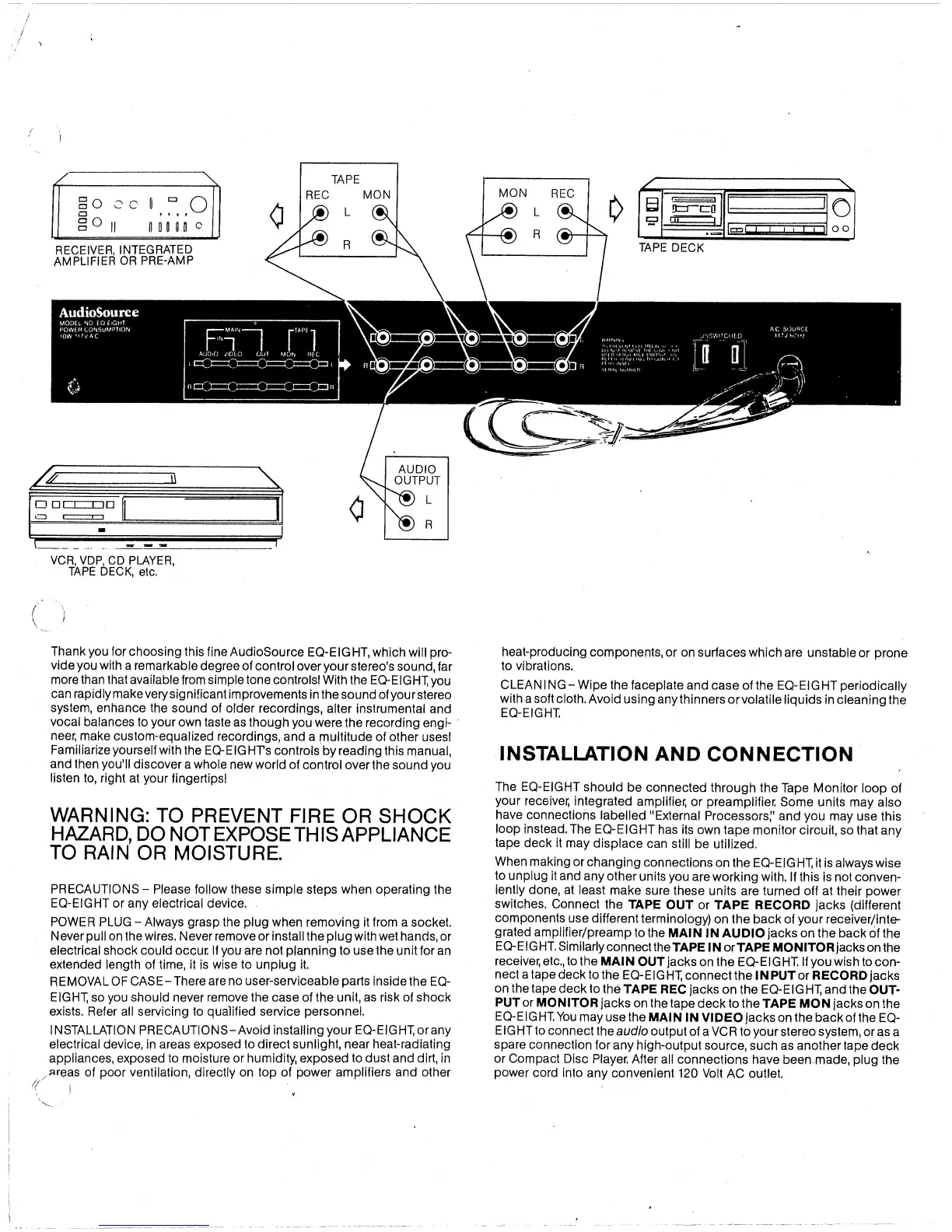 AudioSource EQ 8 - Installation and Connection; Safety and Precautions; Connection Guide