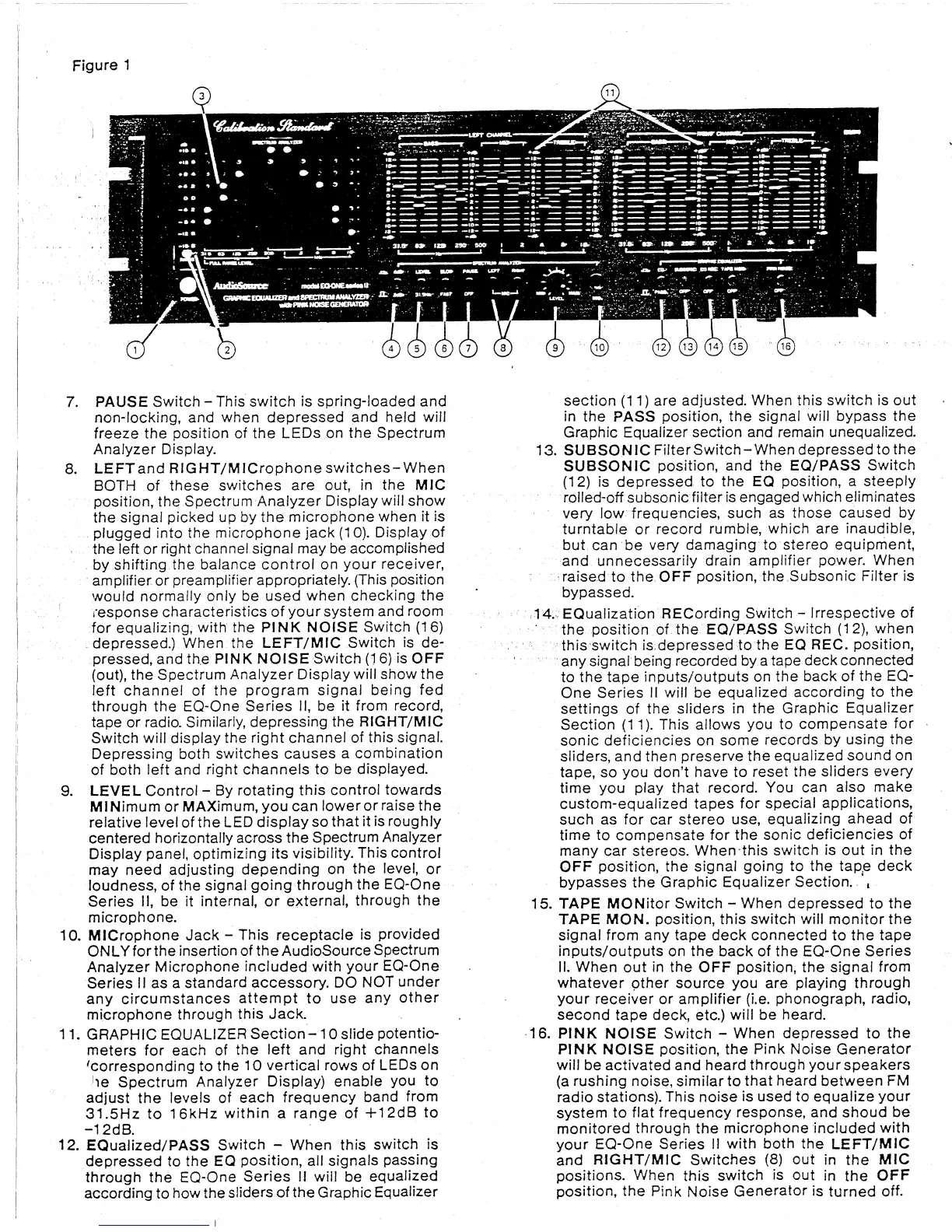 AudioSource EQ One Series II - GRAPHIC EQUALIZER Section; PINK NOISE Switch