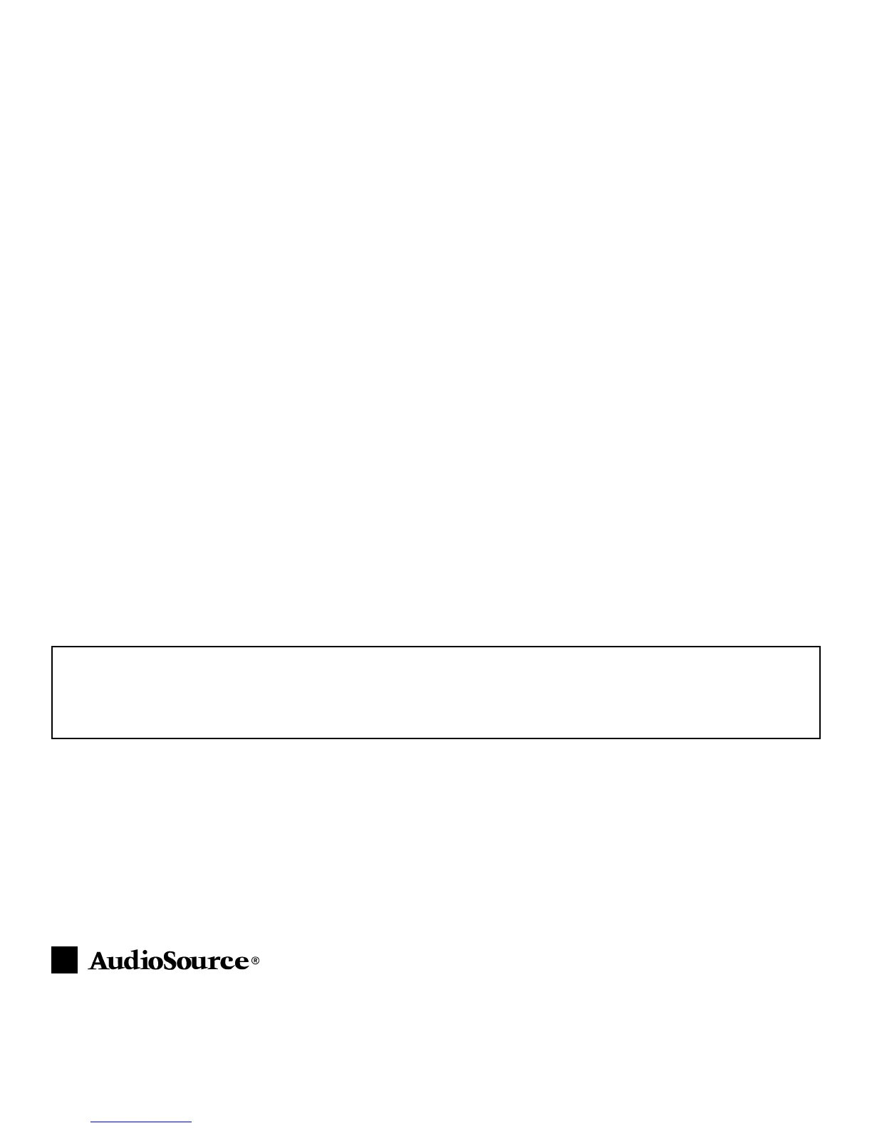 damaged or missing, do not contact your AudioSource dealer. Please call us directly at 800-435-7115.