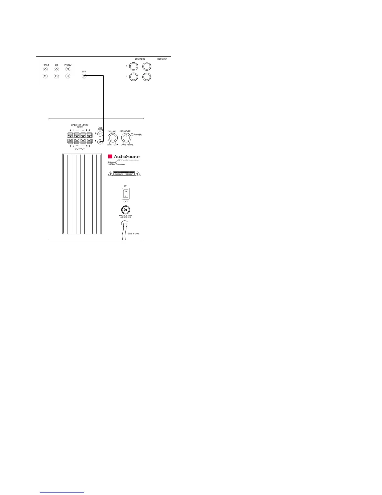 the PSW100’s line level input.