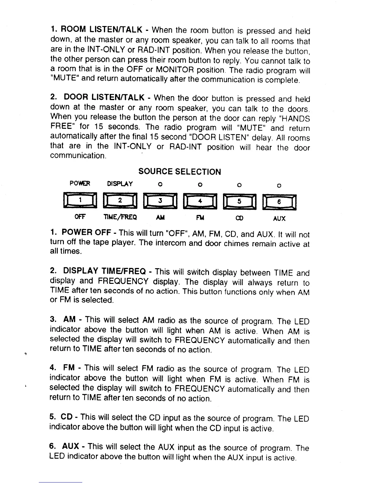 Audiotech 455 - Listen;Talk; Source Selection; Room Listen;Talk; Door Listen;Talk