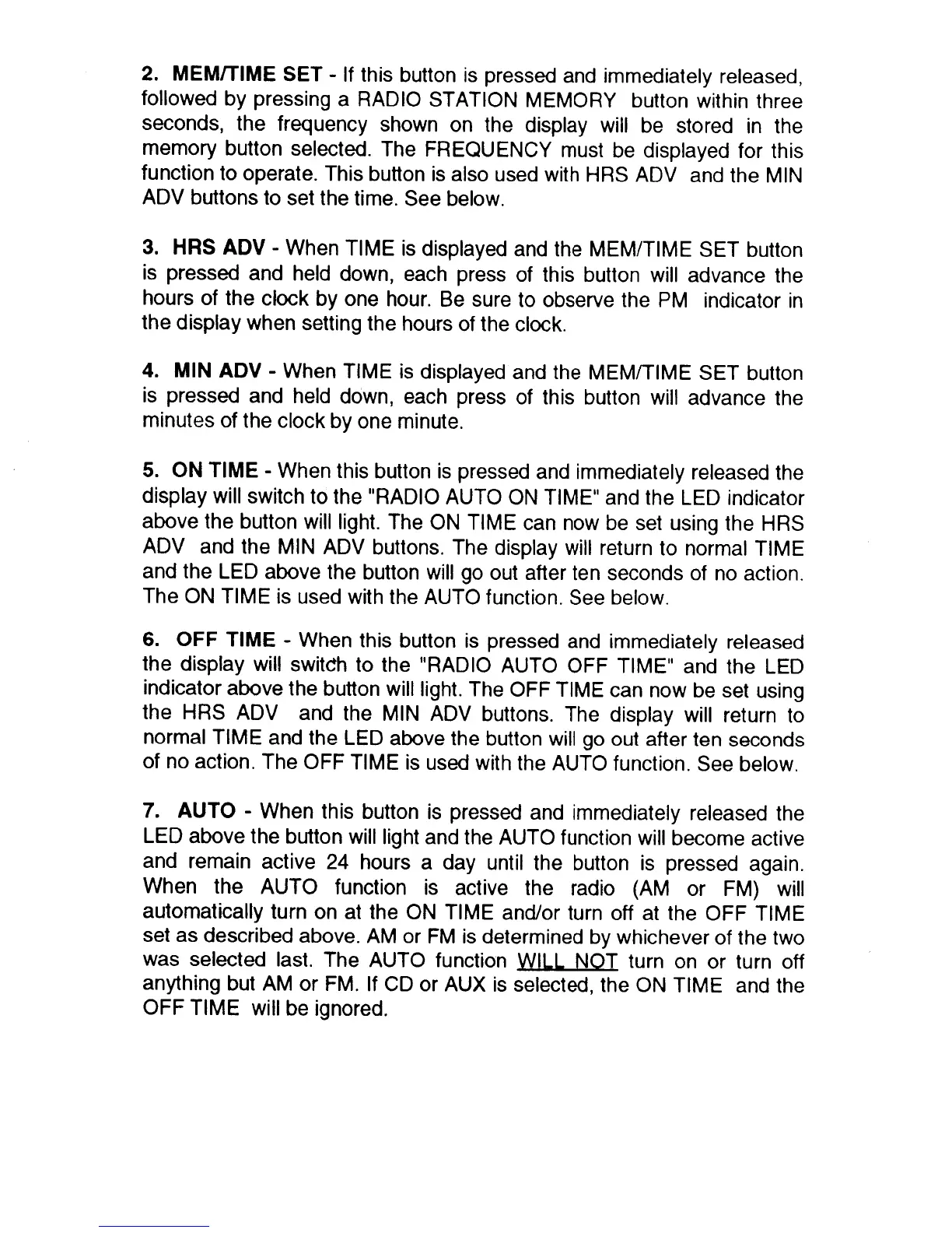 Audiotech 455 - Mem;Time Set; Hrs Adv; Min Adv; On Time