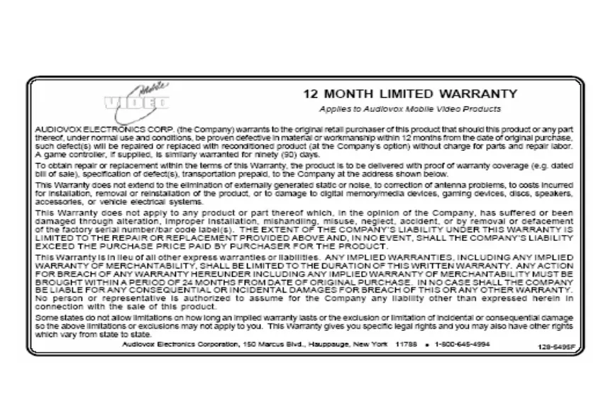 Audiovox Electronics ACA400 - Limited Warranty; Warranty Terms, Exclusions, and Liability