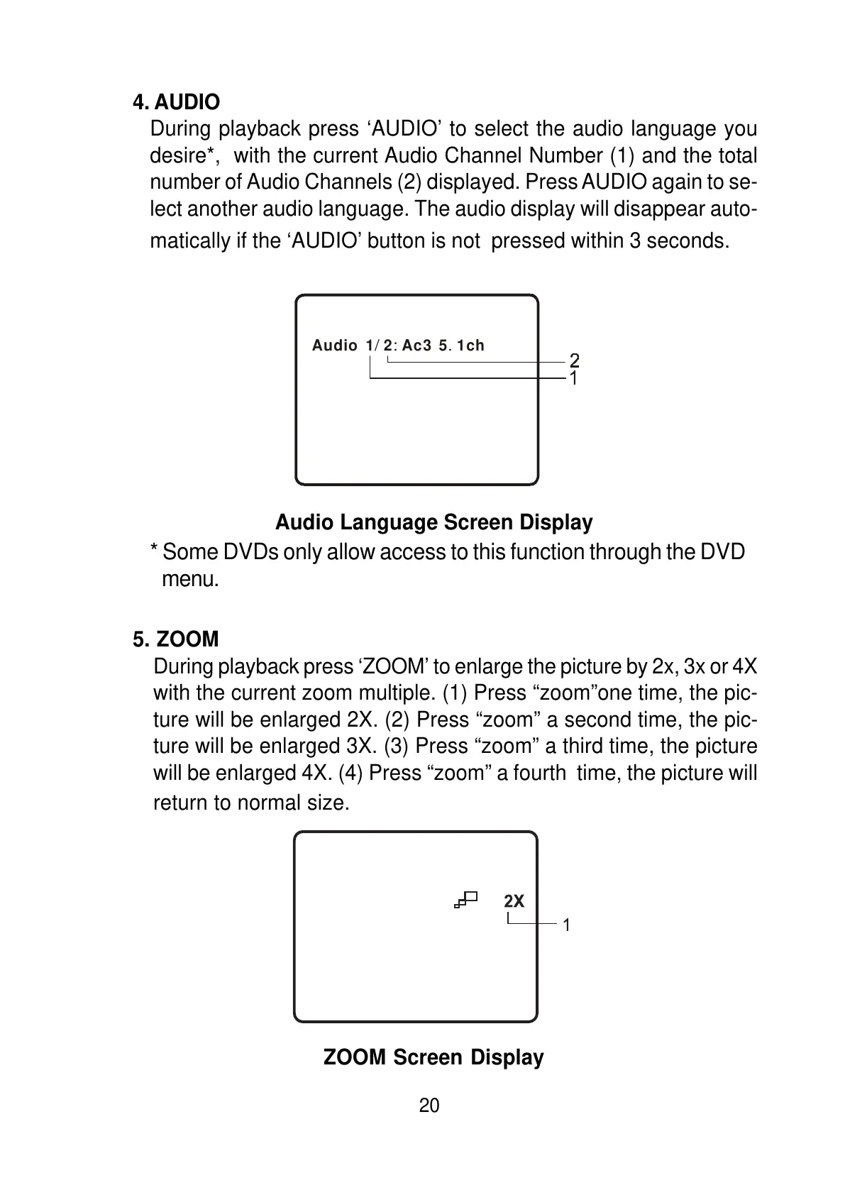 number of Audio Channels (2) displayed. Press AUDIO again to se-