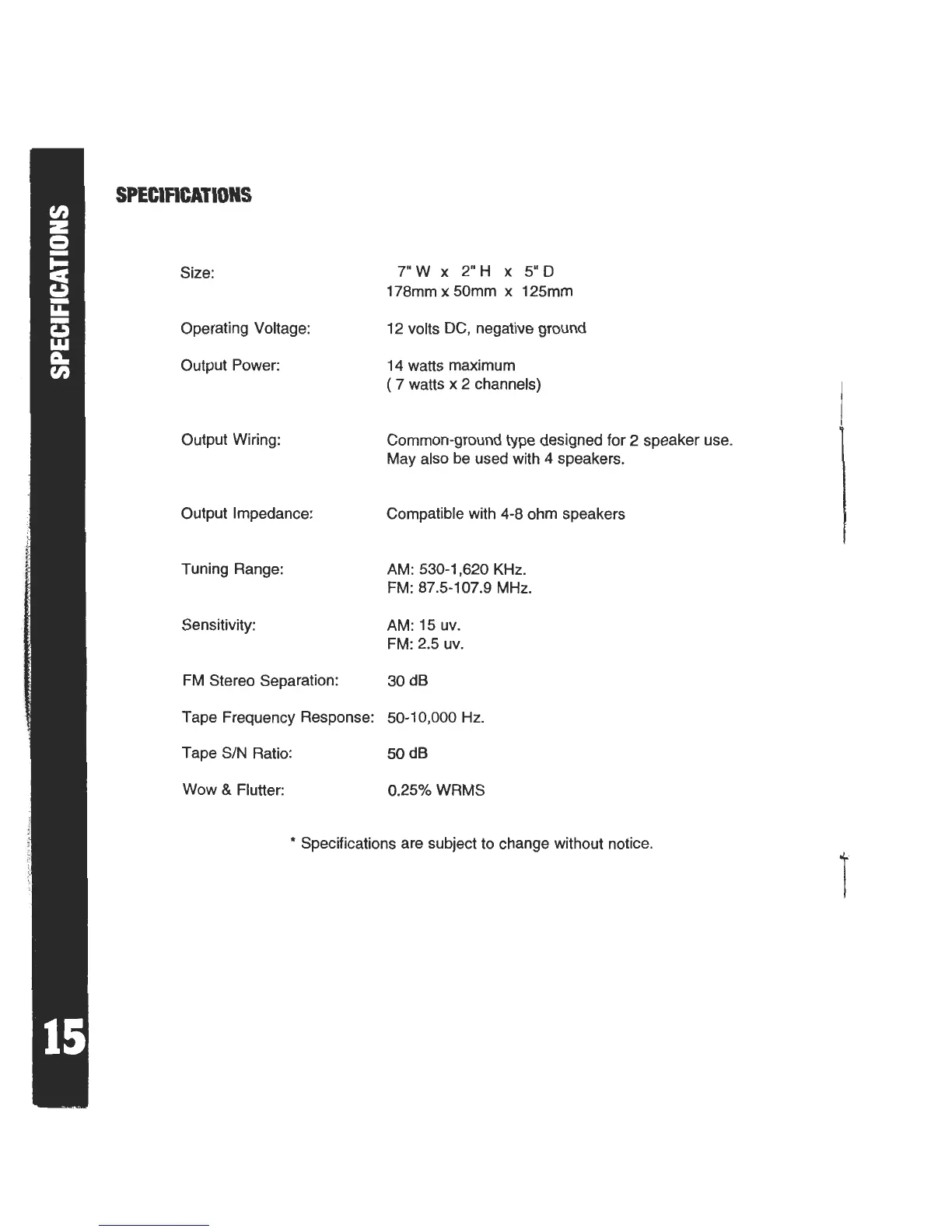 SPECIFICATIONS