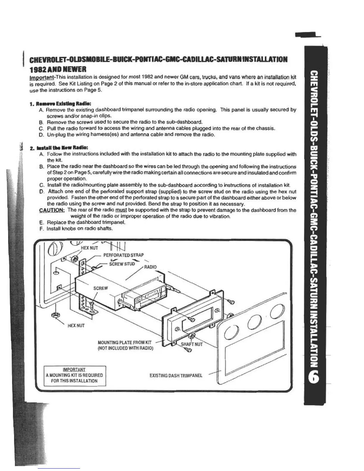 ImRortant- This installation is designed for most 1982 and newer GM cars, trucks, and vans where an installation kit