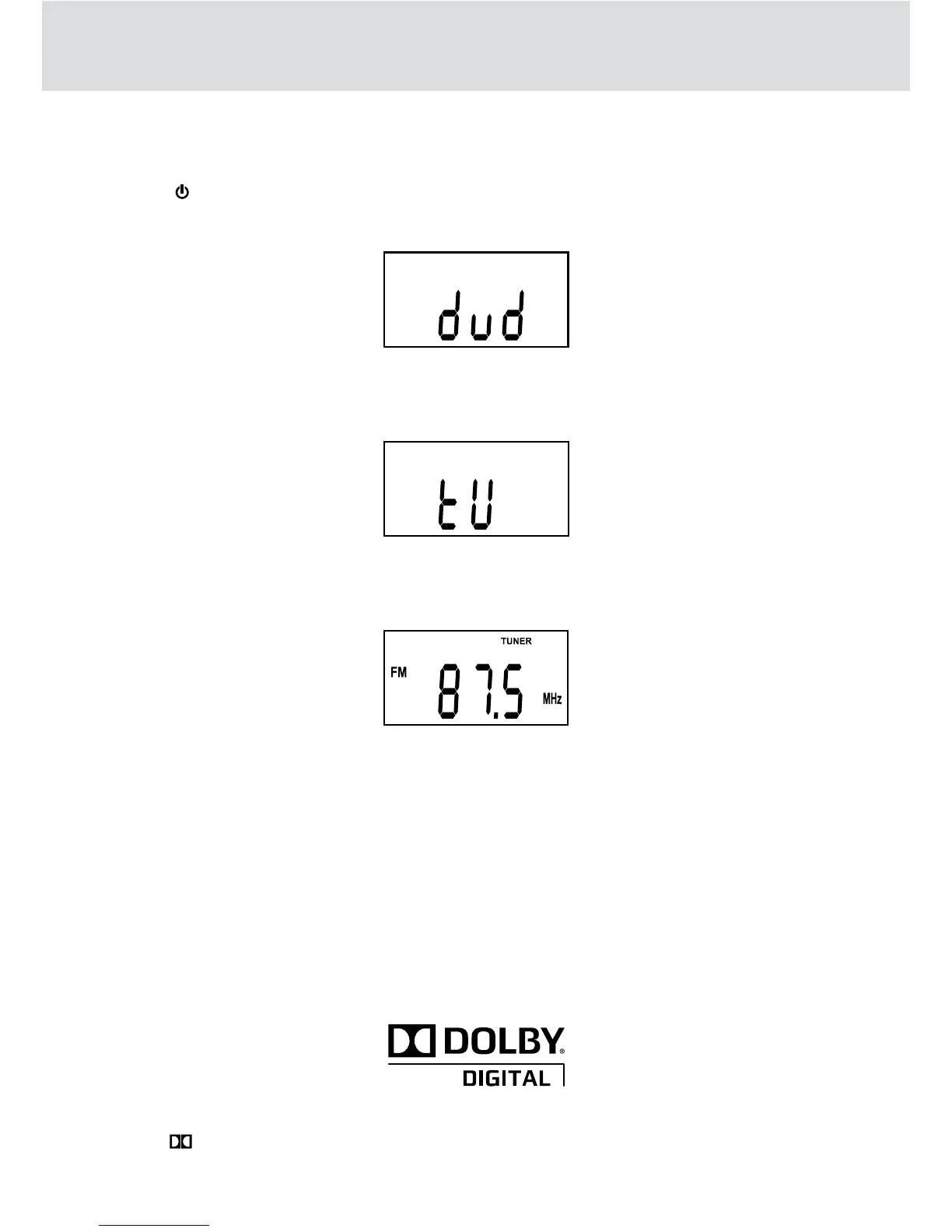 ON/OFF button to turn the unit on, “DVD” will appear on the front display.