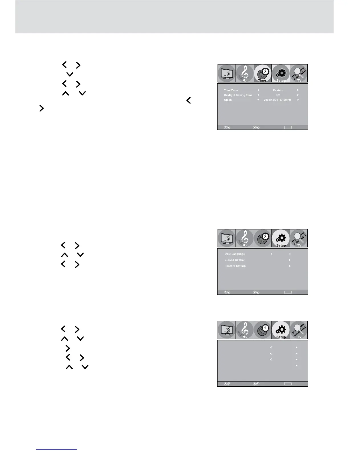 6. To exit the TV SETUP MENU and return to the normal screen,