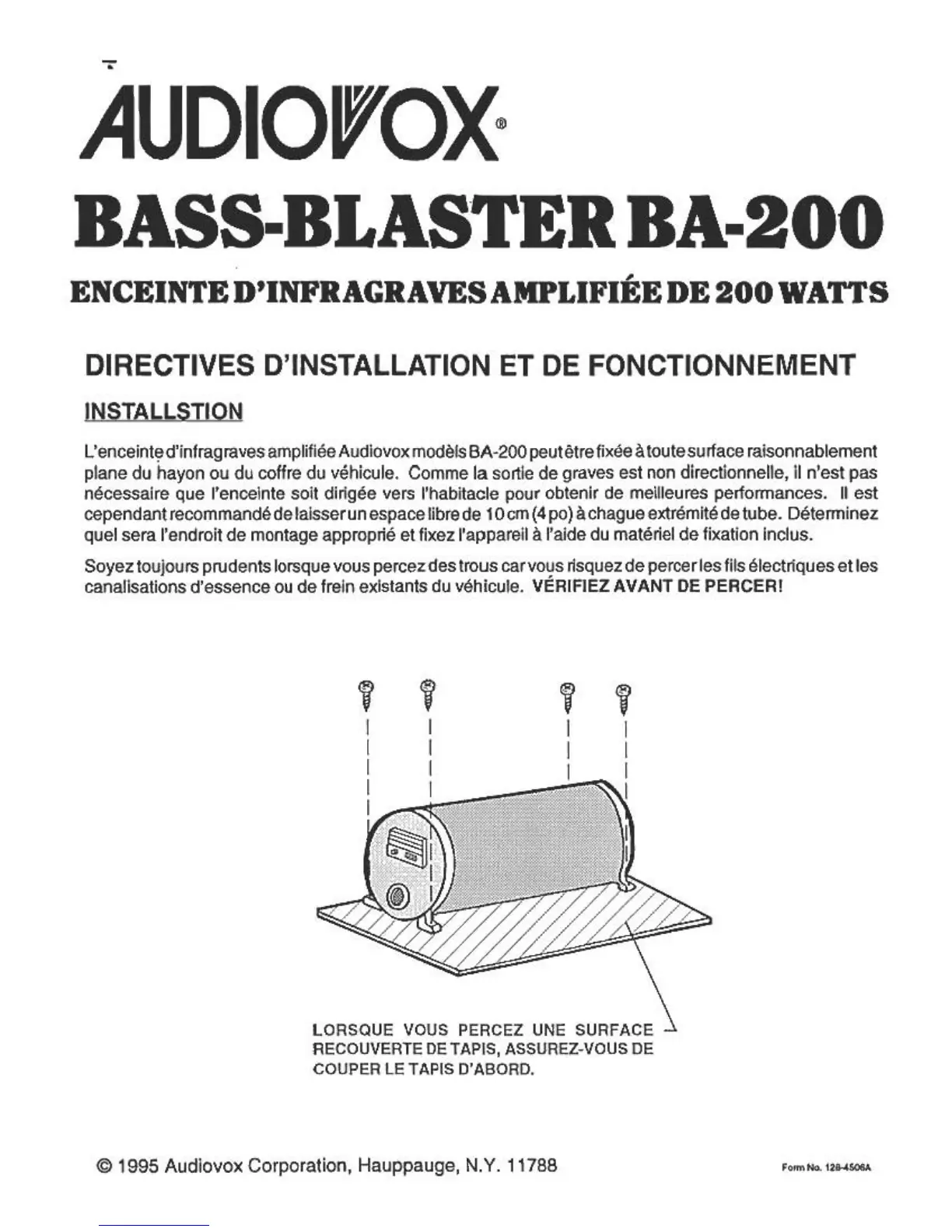L 'enceint~ d'infragraves amplifiee Audiovox models BA-200 peut etre fixee a toute su rface raisonnablement