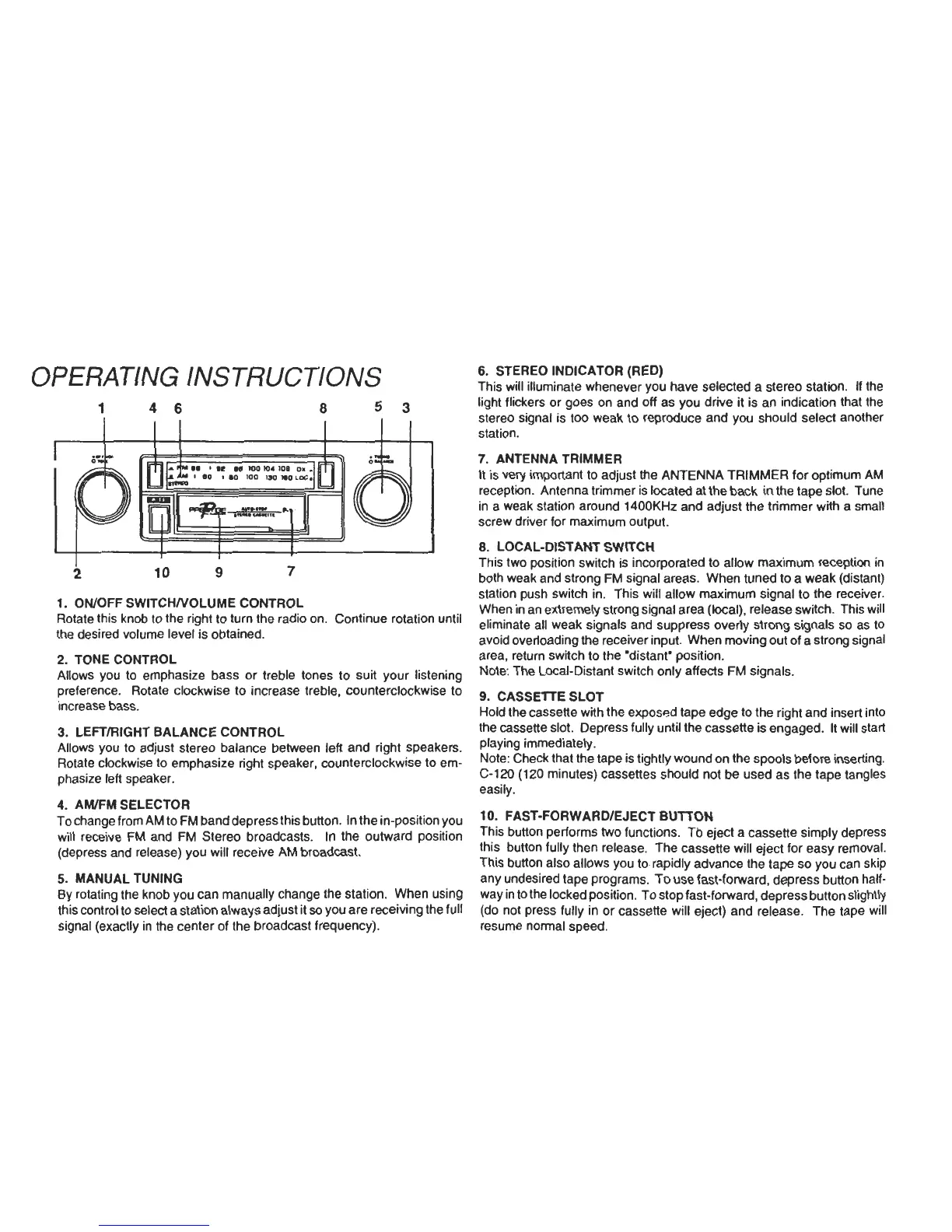 reception. Antenna trimmer is located at the back in the tape slot. Tune