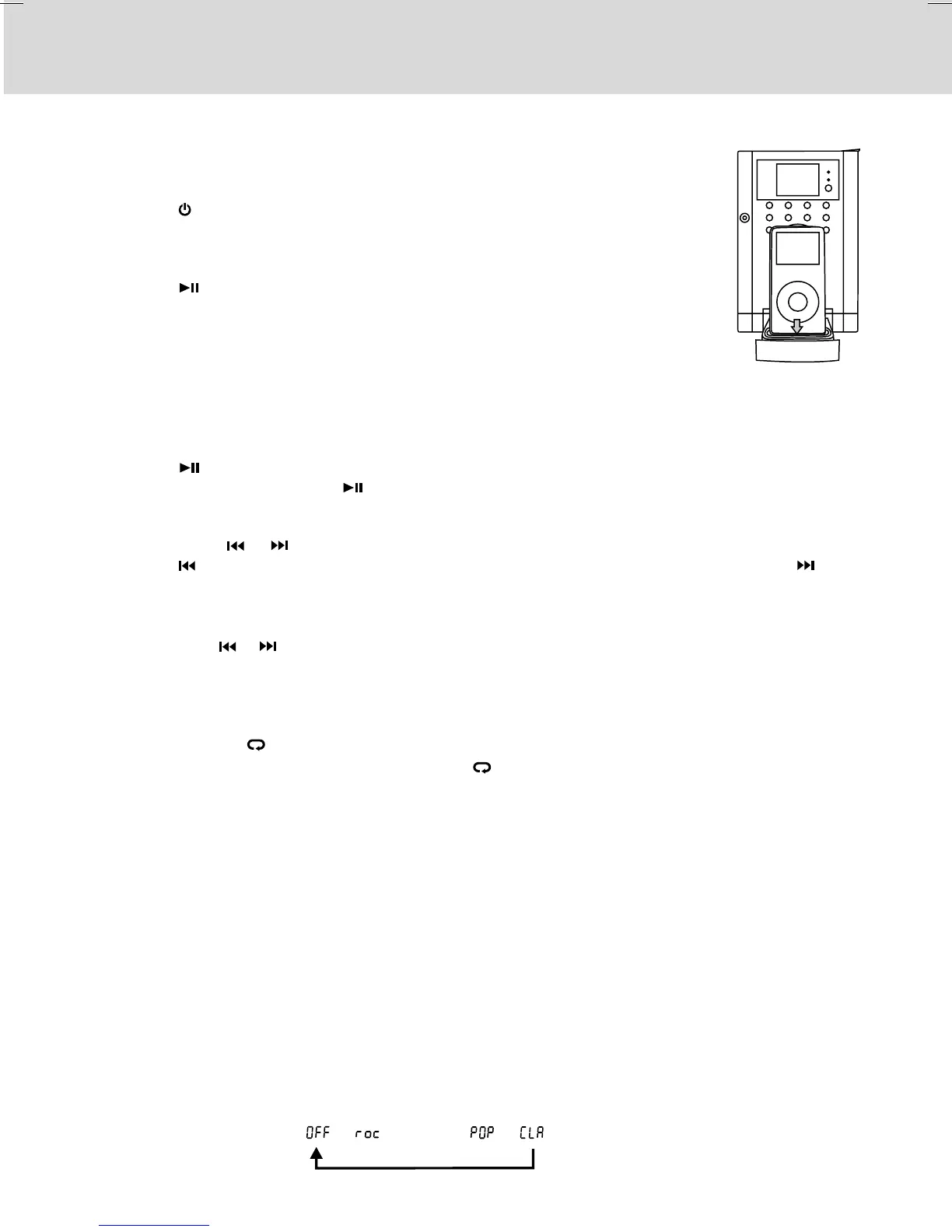 • Press the MEM.UP/ button on the remote control and the repeat indicator appears on the iPod screen.