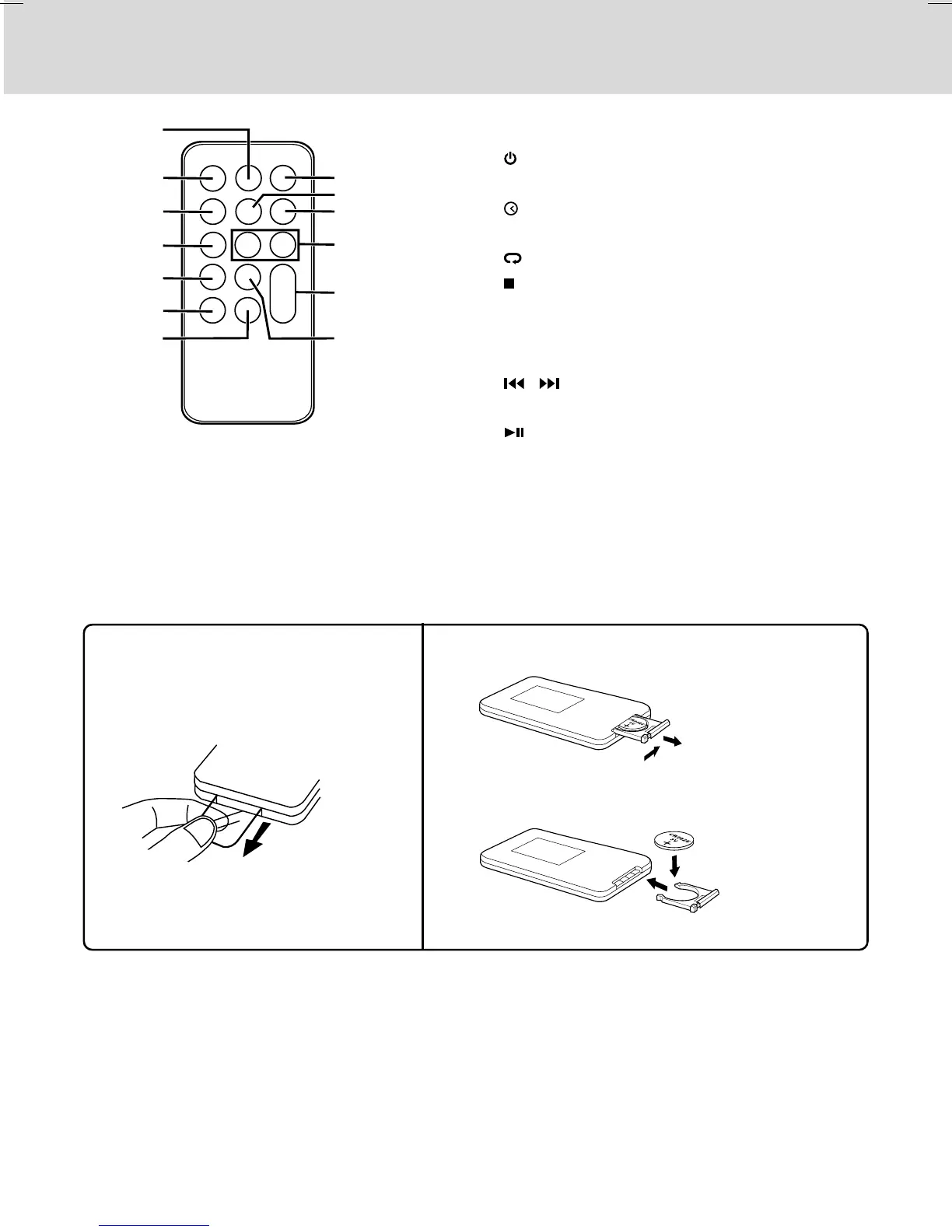 Note: If the remote control is not going to be used for a long time, remove the battery to avoid damage