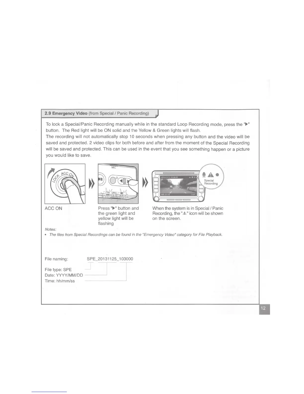 lock a Special/Panic Recording manually while in the standard Loop Recording mode, press the