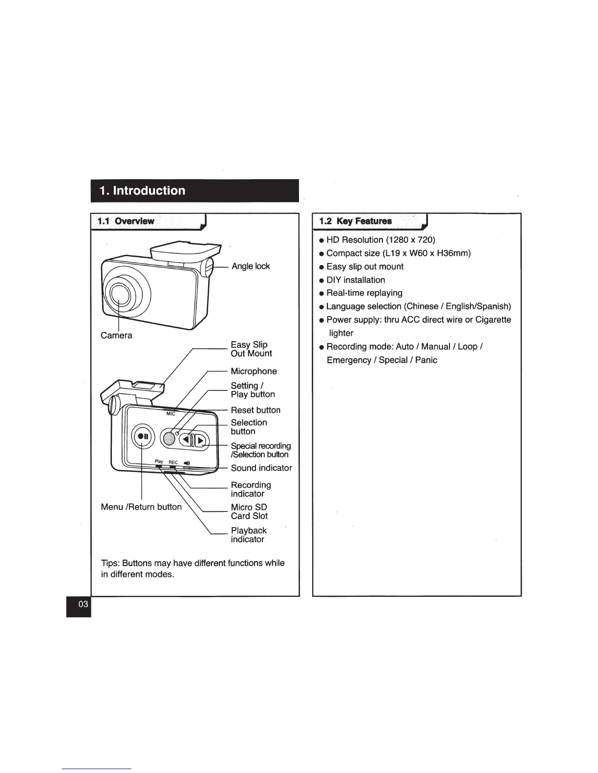 Tips: Buttons may have different functions while