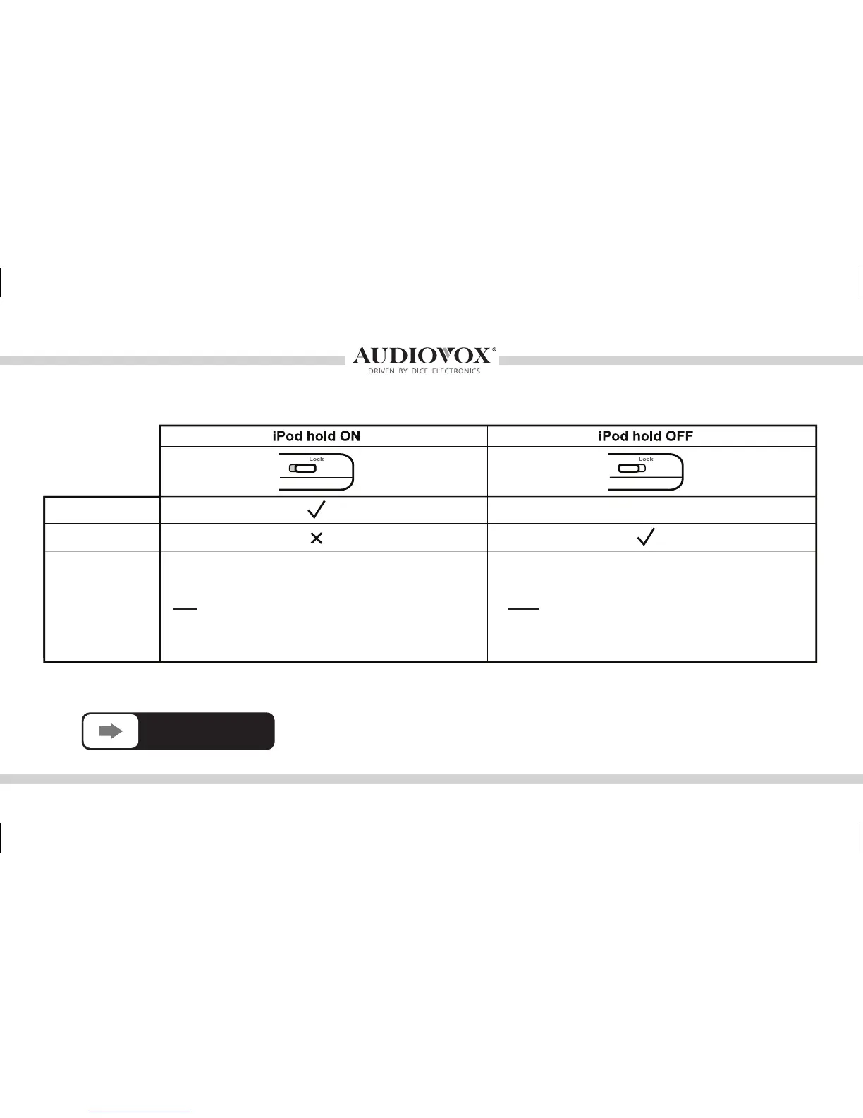 Note: Setting the iPod’s hold switch must be done prior to connecting it to the dock cable.