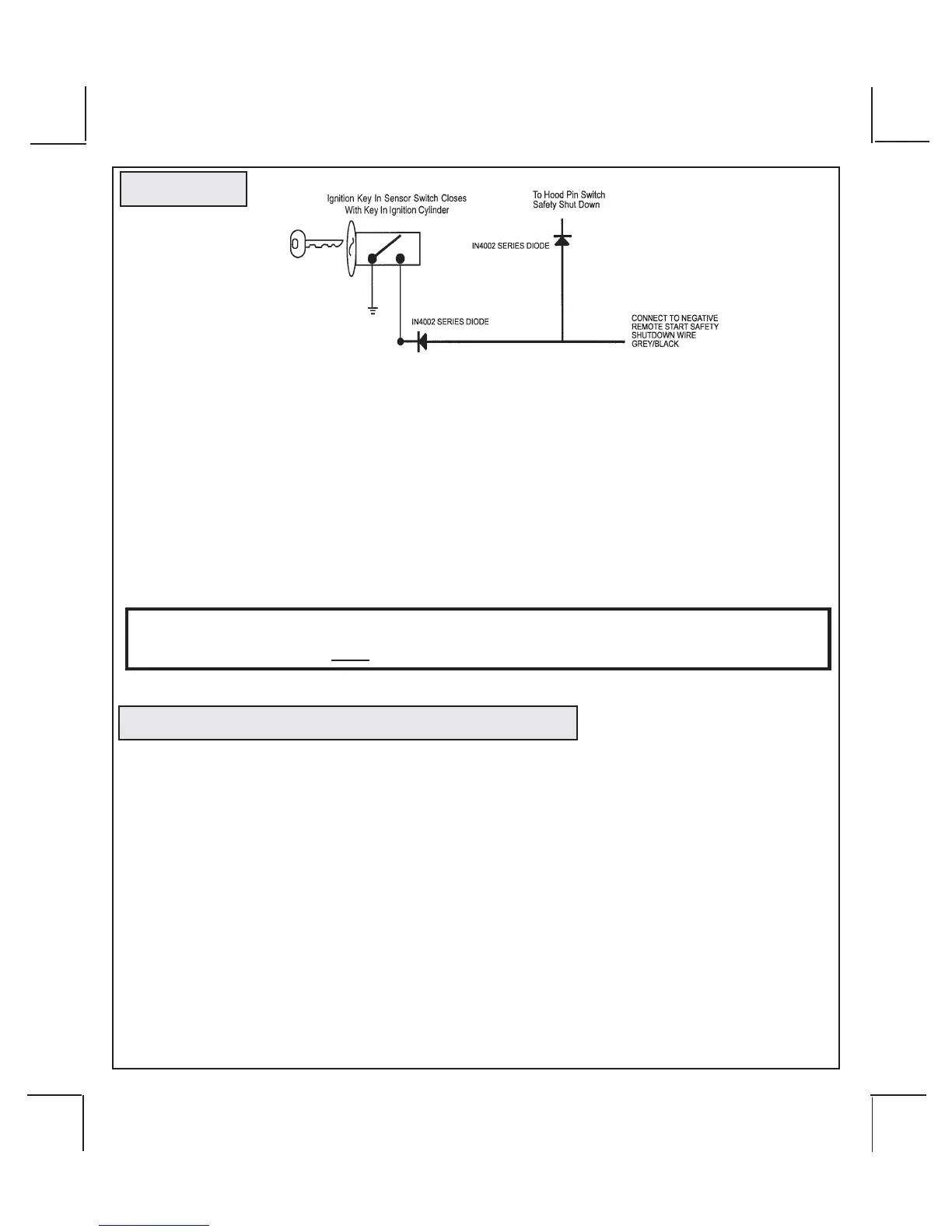 must be connected to the Gray/Black wire of the Remote Start Unit. The cathode (Striped) side must be con-