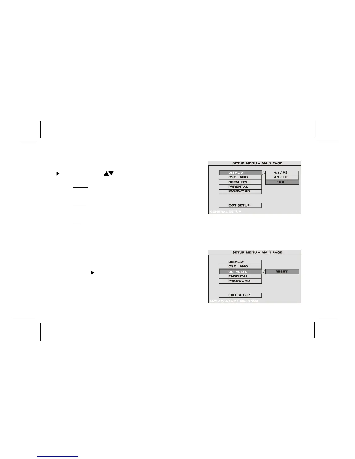 SETUP allows you to adjust screen setting (aspect ratio) Press