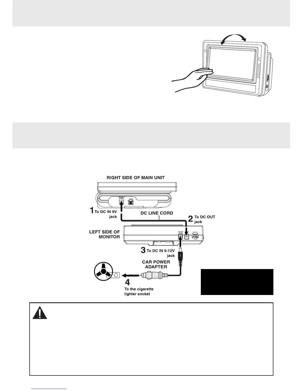 • The included 12V car plug adapter is for use with this unit only. Do not use it with any other equipment.