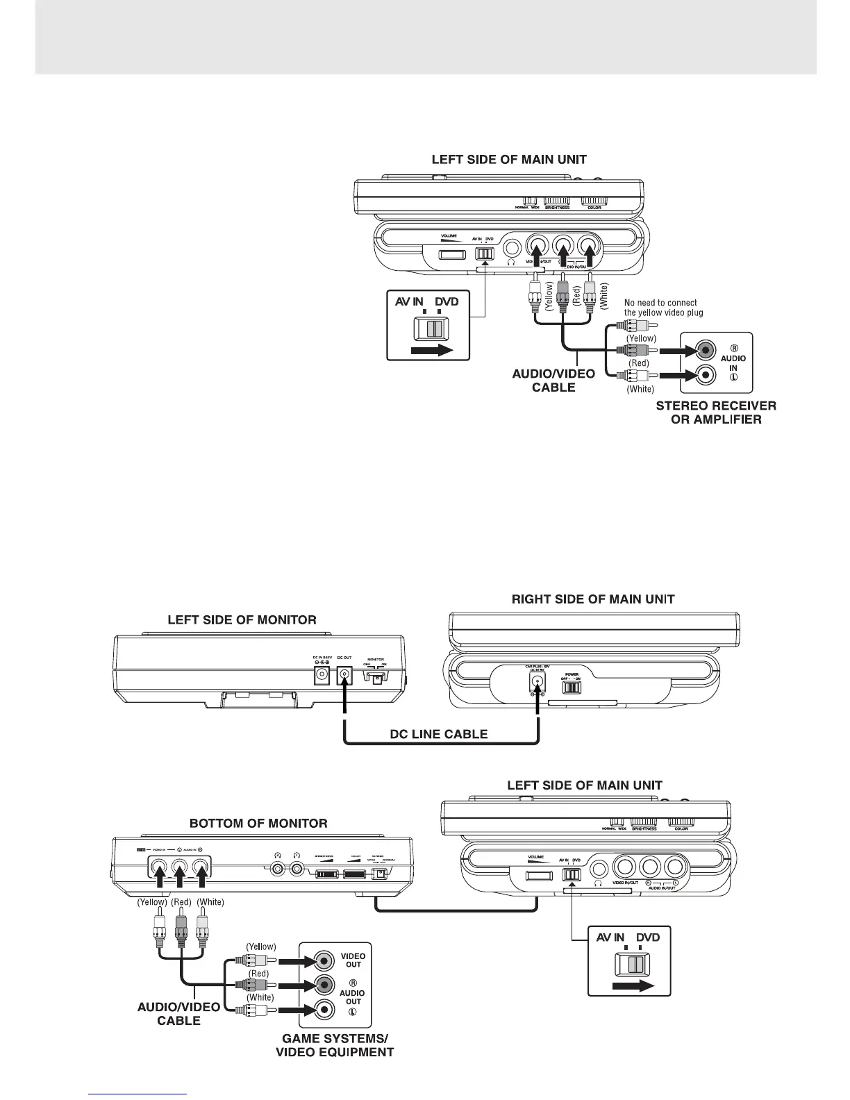 You can view a DVD in the main unit, while utilizing a game console or other video equipment on the second monitor