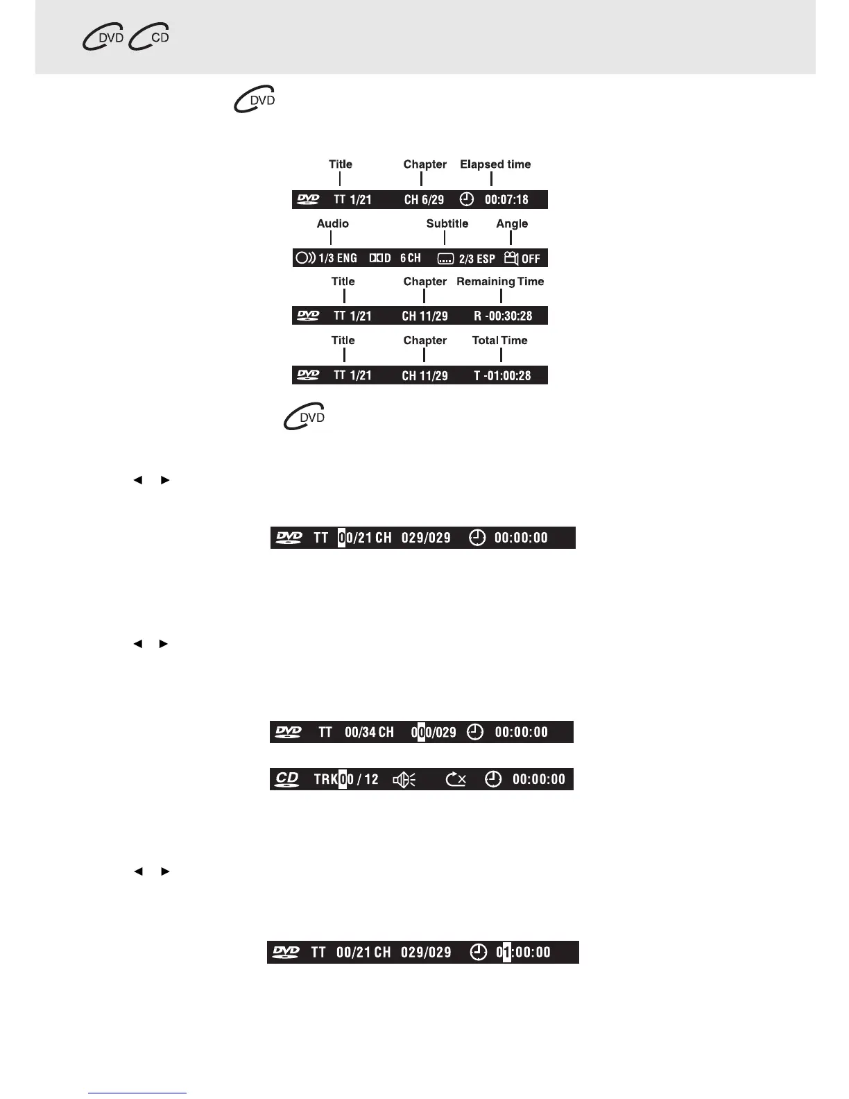 • While the disc is playing, press the DISPLAY button to display the screen shown below.