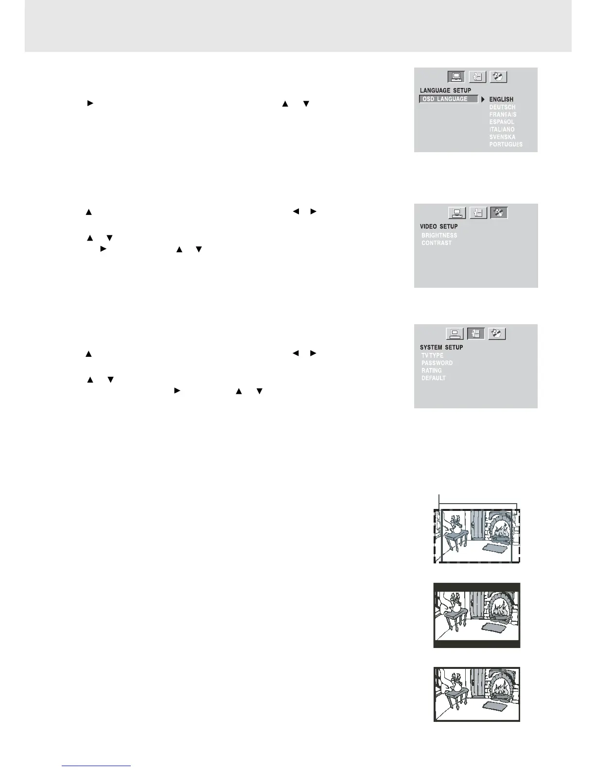 button to select LANGUAGE SETUP, then press or button repeatedly