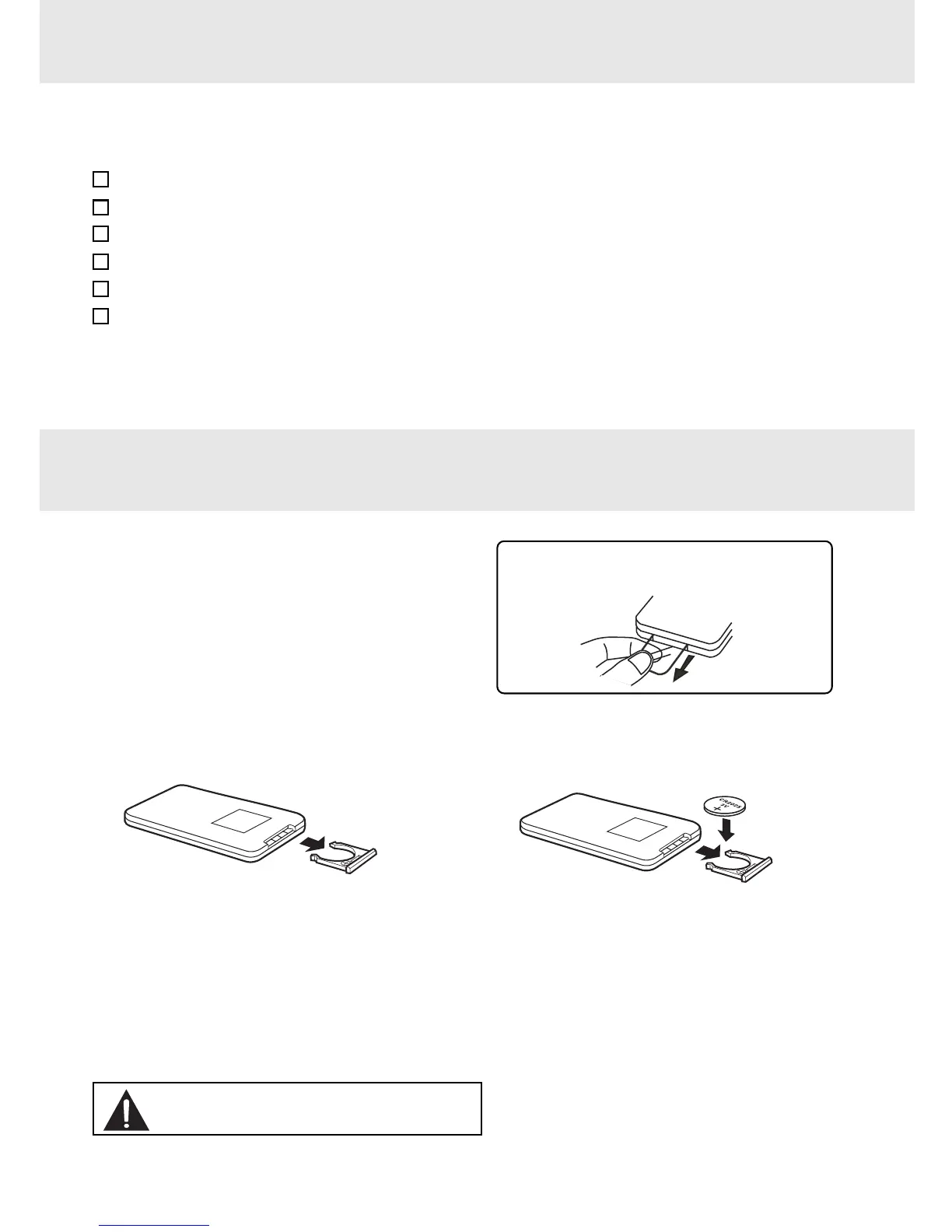 1. Open the battery door. 2. Insert one CR2025 (3V) size battery.