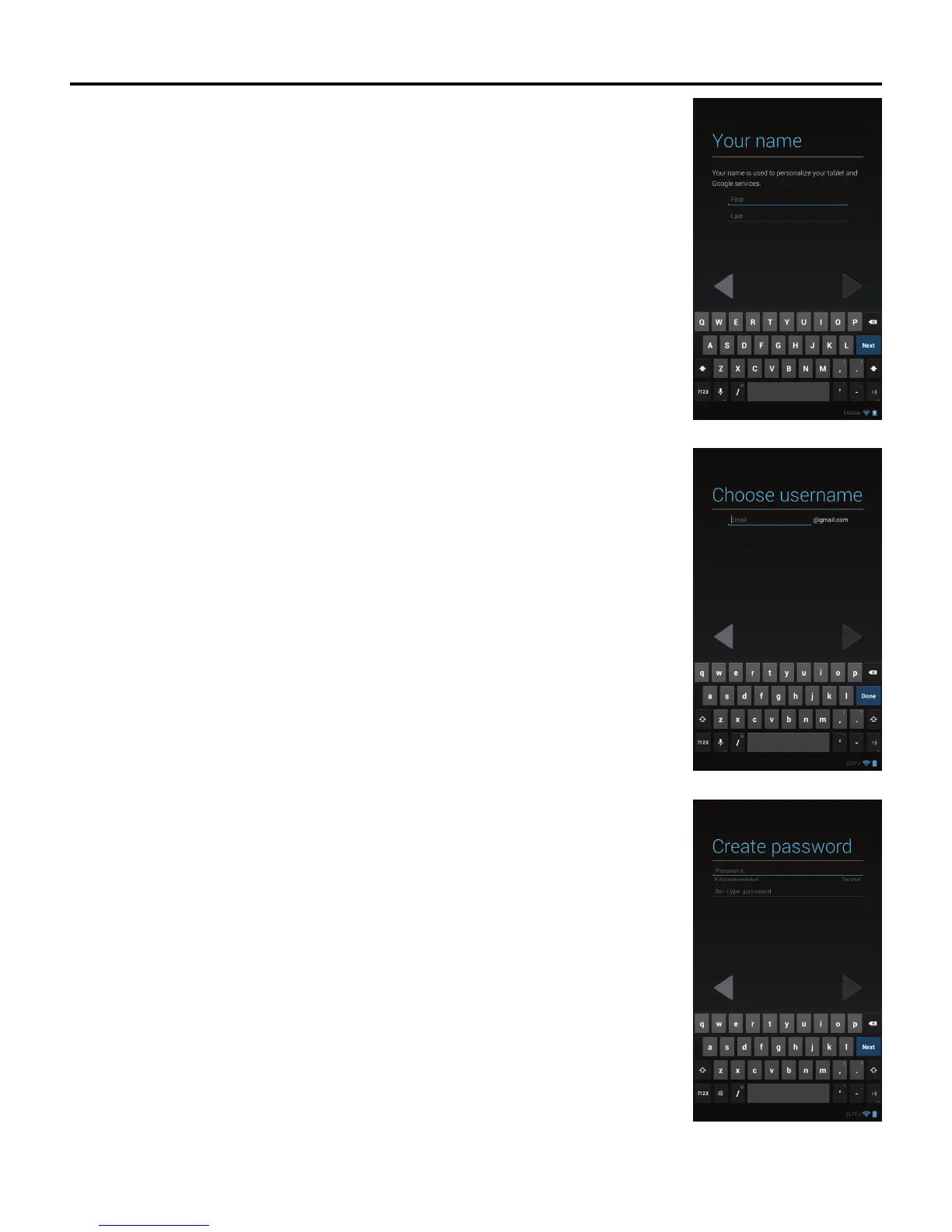 Note: When creating a Google™ account, write down the information and store it in a safe