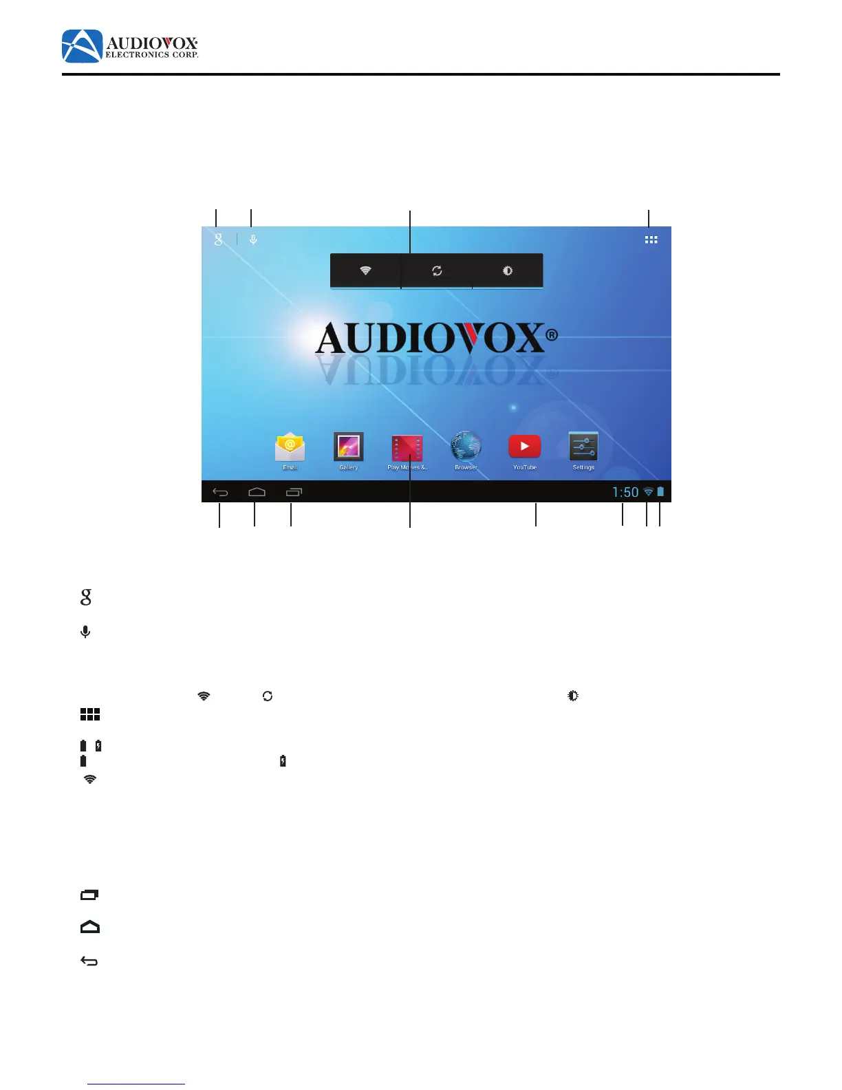 Tap to activate the Google™ voice search function. The tablet must be connected to the Internet. Speak the desired