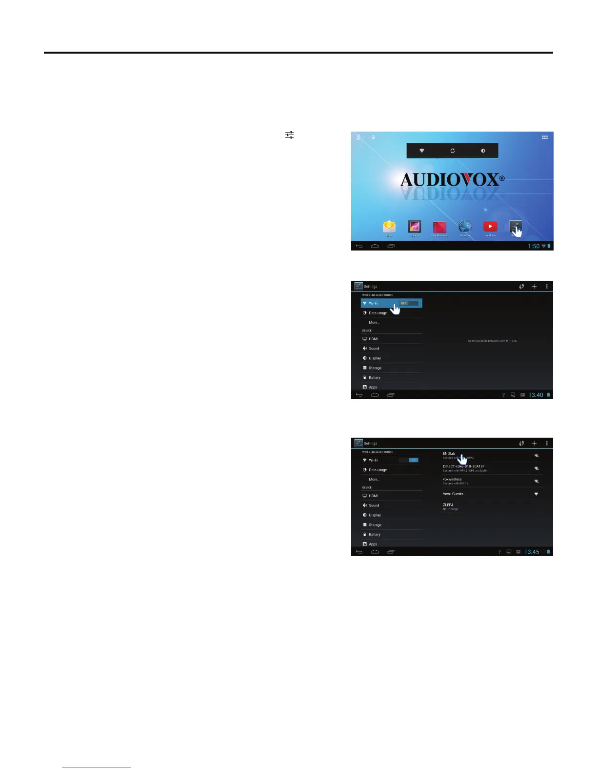 To connect the tablet to the Internet via Wi-Fi