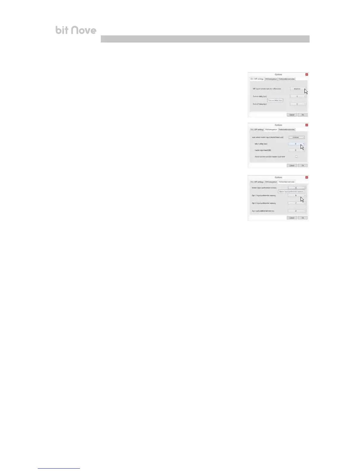 6. ON / OFF settings: function to set up the bit Nove turn on parameters.