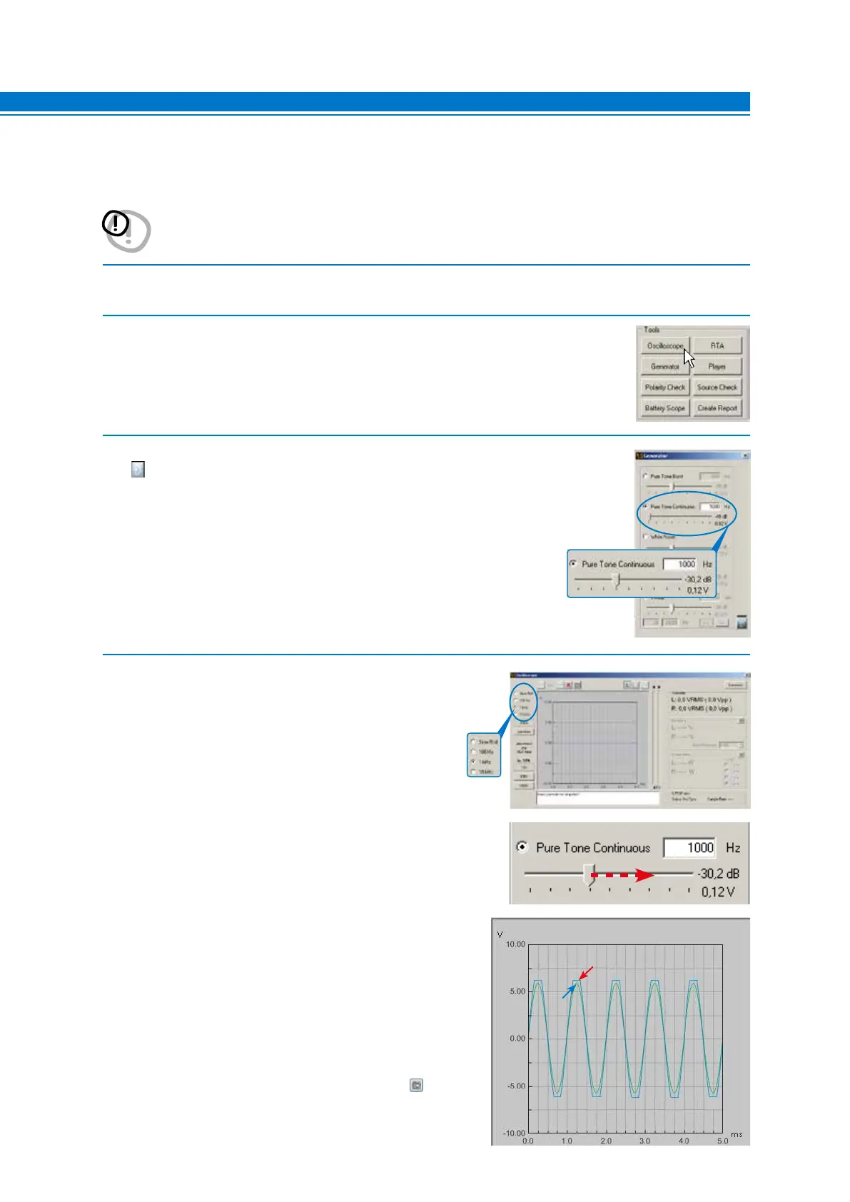 Increase the level of Pure Tone Continuous until the oscilloscope