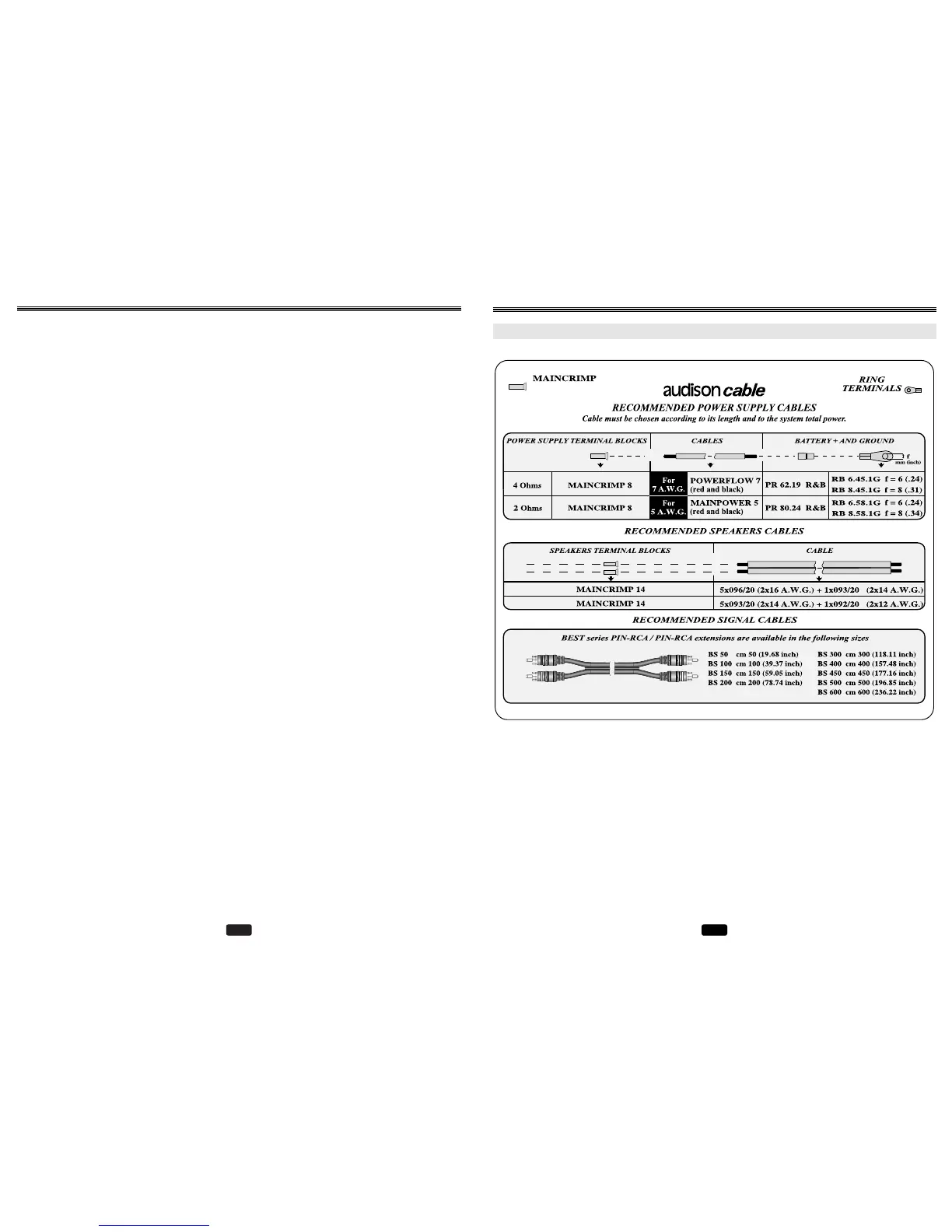 audison cable PRODUCTS FOR ELECTRIC CONNECTIONS