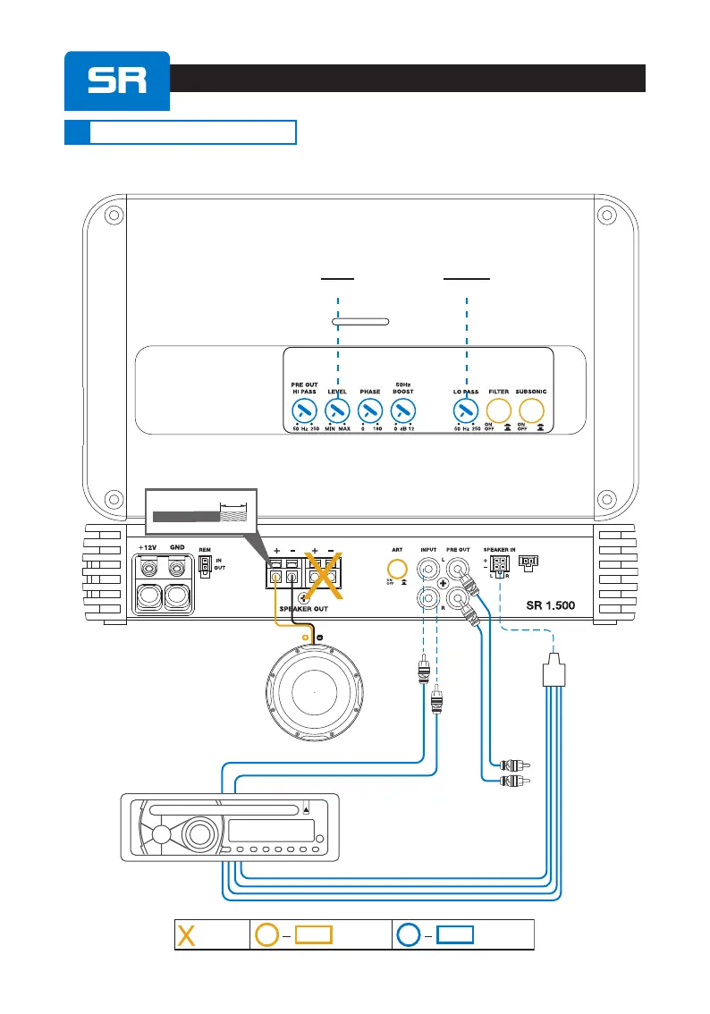 Audison SR 4.500 - Installation Examples; 1 Ch: Filtered Subwoofer