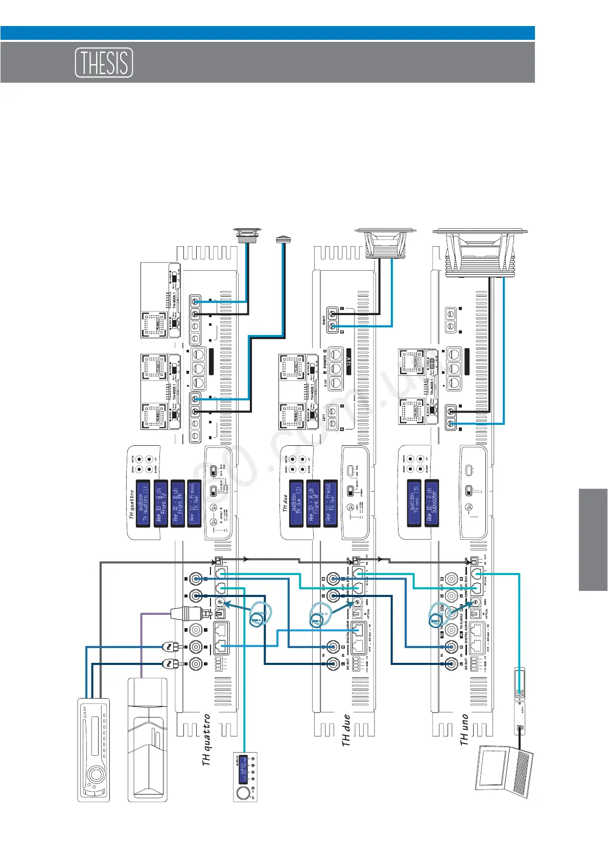 Example: Three Way + multi-amplified Sub, TH amplifiers