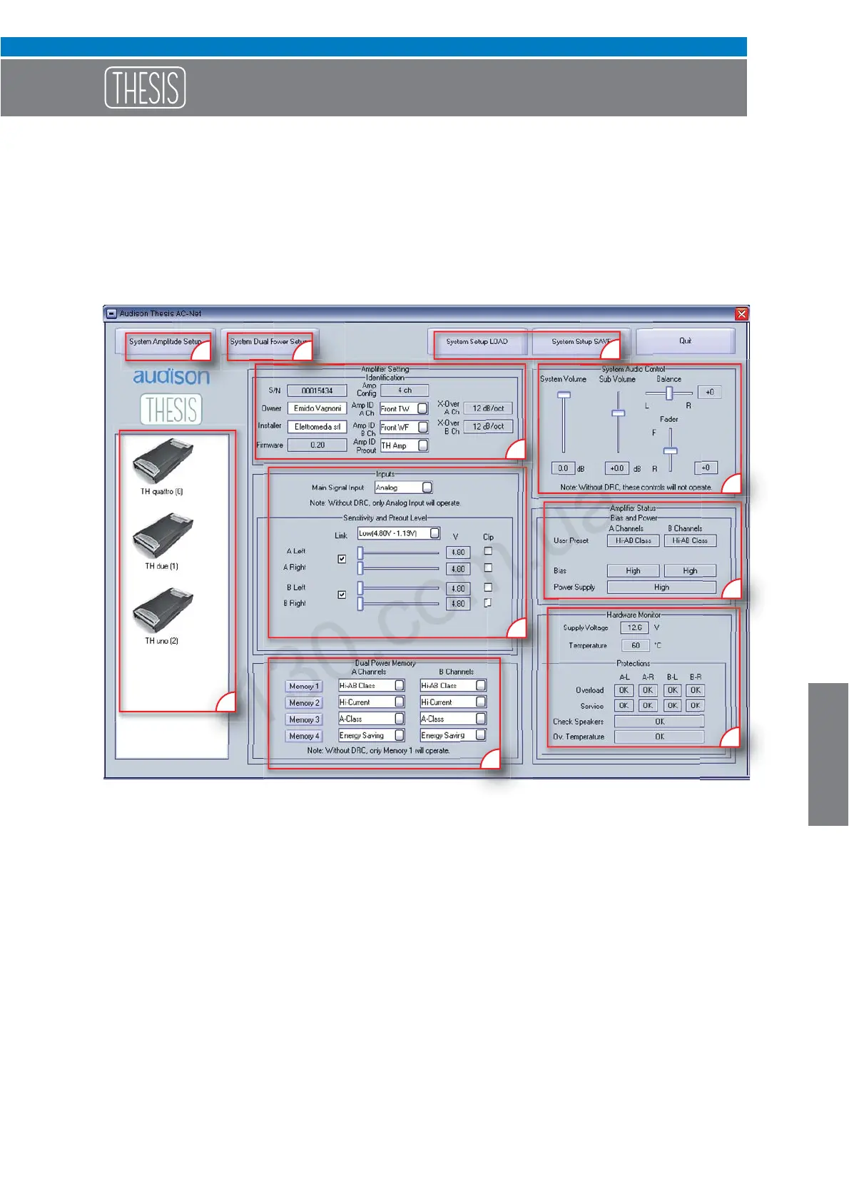 9 • SYSTEM DUAL POWER SETUP: This function enables the function setting of all the amplifiers in the