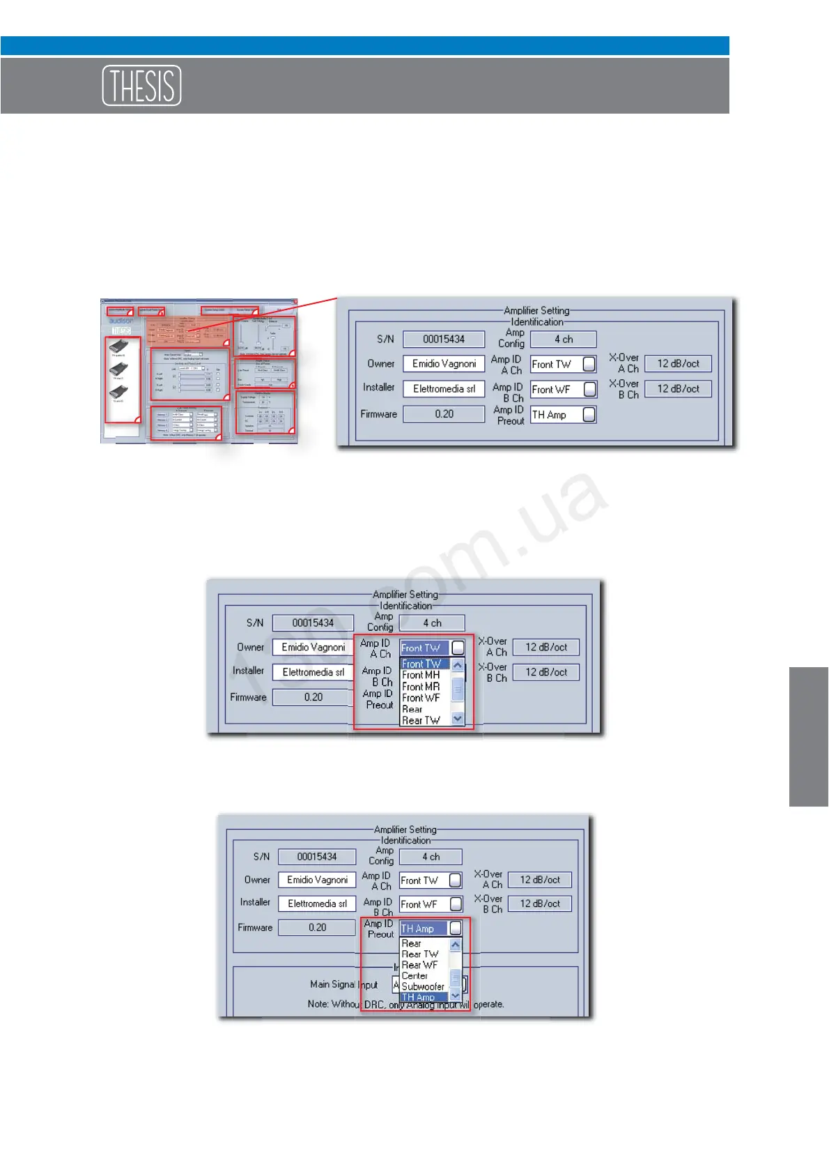 If the system is also composed by non-TH amplifiers, they can be managed by attributing an ID to the Pre Out
