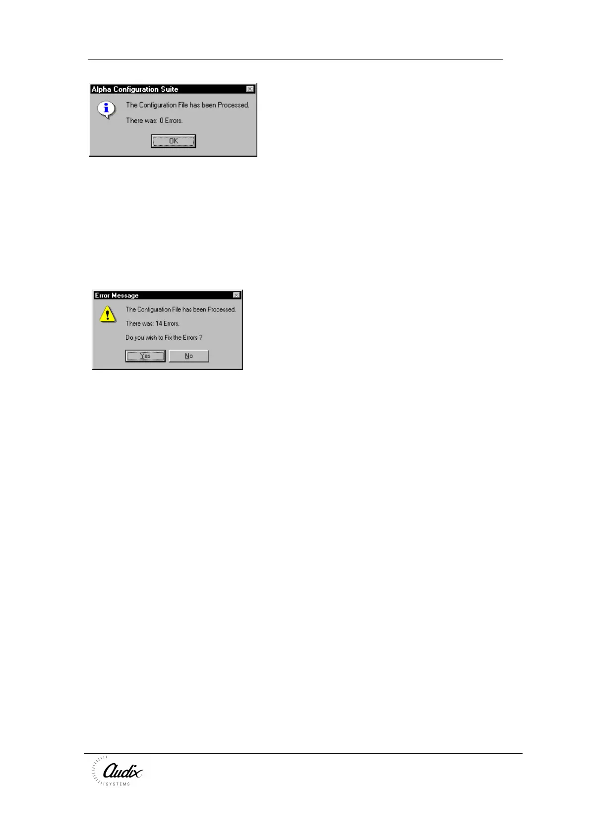 If the configuration has errors you will see the following box appear. Click on the OK button