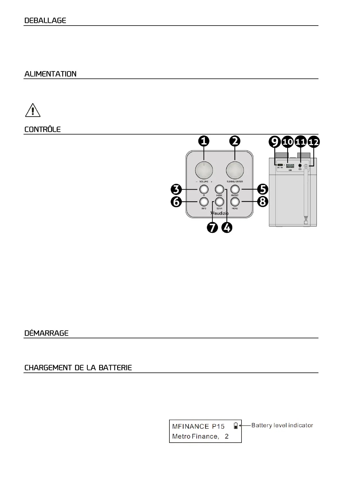 radio est éteinte pendant la charge, le voyant s'éteint lorsque la charge est terminée. Si la radio est allumée pendant la