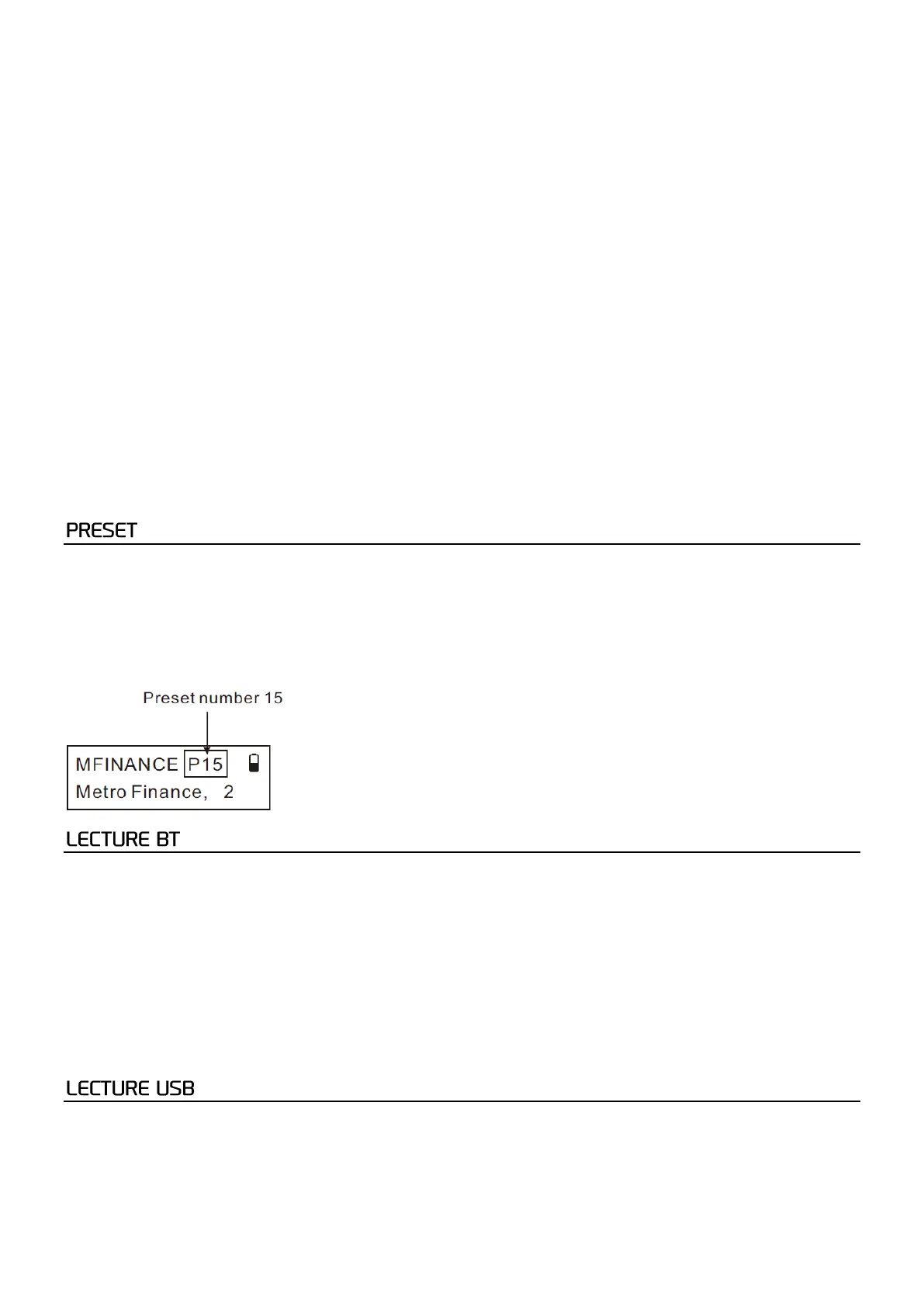 mémorisé" s'affiche sur l'écran. Pour rappeler la station préréglée, il suffit d'appuyer brièvement sur le bouton