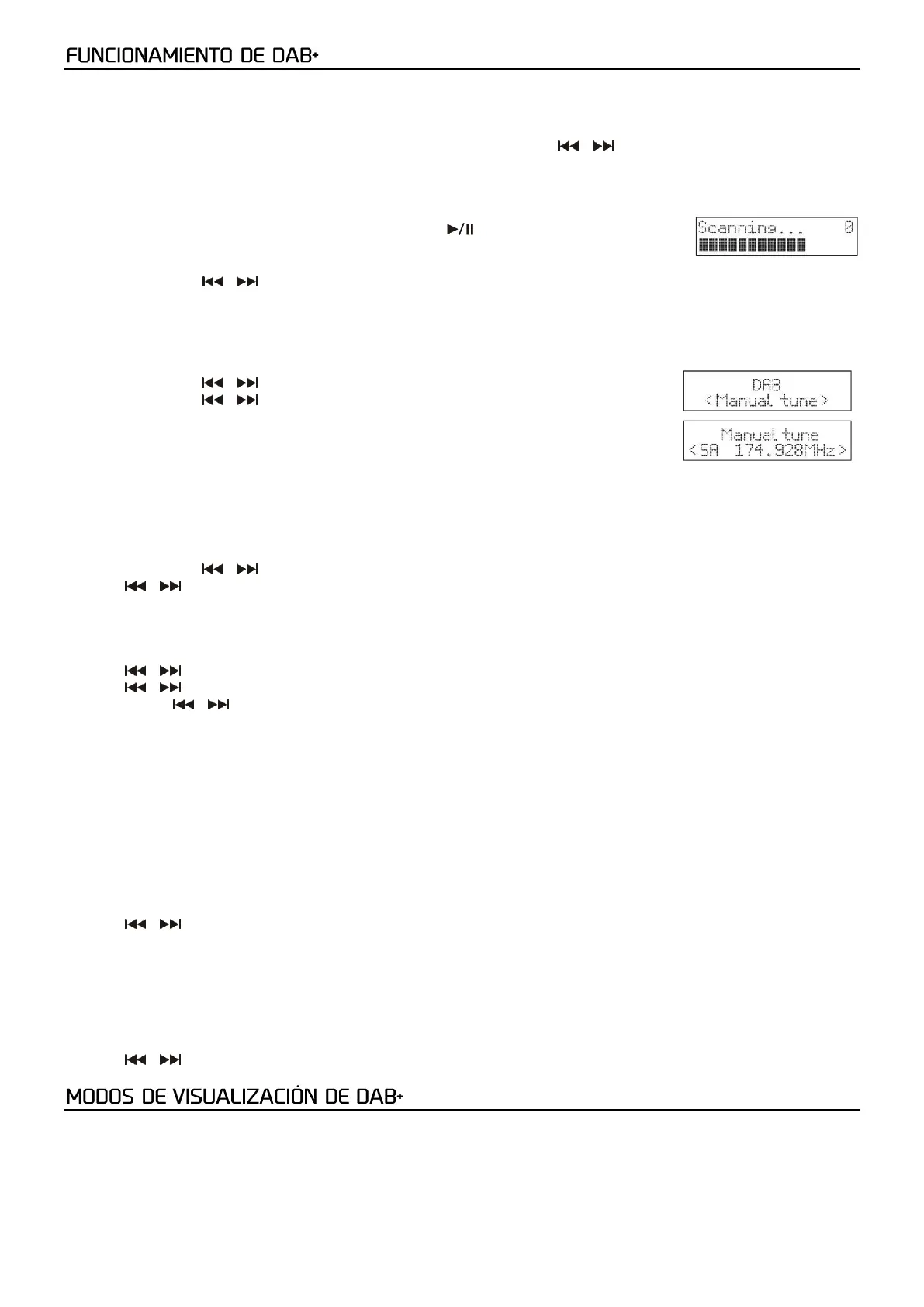 automáticamente en el modo DAB y realizará una búsqueda automática. Durante la exploración, la pantalla mostrará "