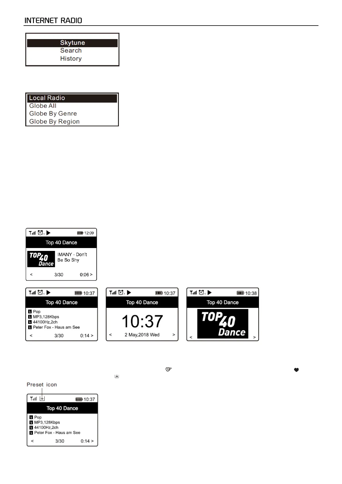 Kies in het startscherm voor Internetradio en u vindt de opties hieronder: